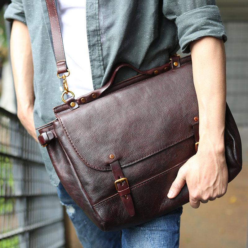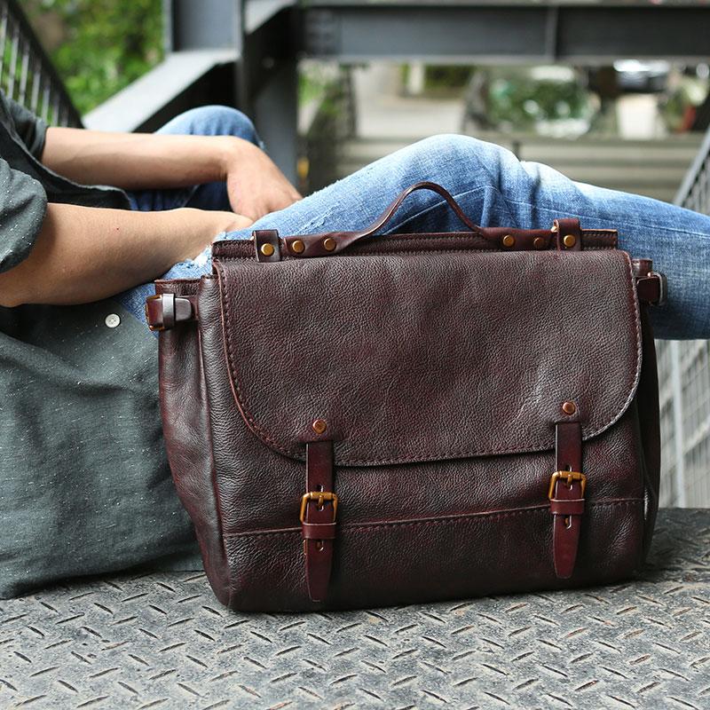 Design: Vintage Leather Mens Briefcase Messenger Bag Handbag Shoulder Bag for men
