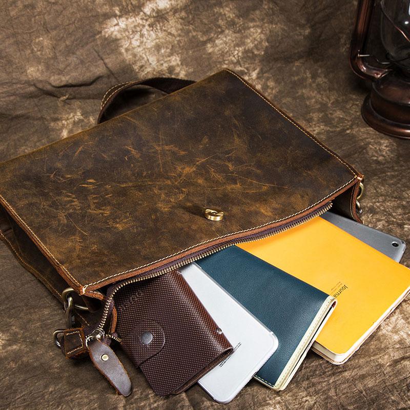 Design: Leather Men Black Messenger Bag Shoulder Bag for Men