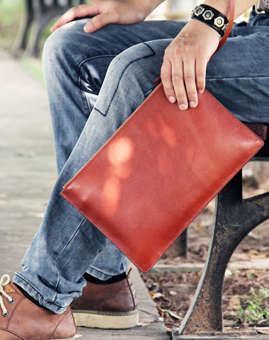 Style: Leather Mens Clutch Wristlet Bag Black Zipper Clutch Wallet for Men