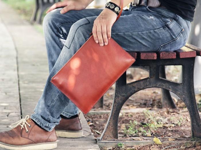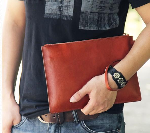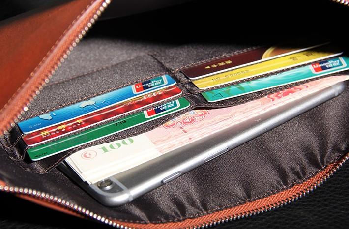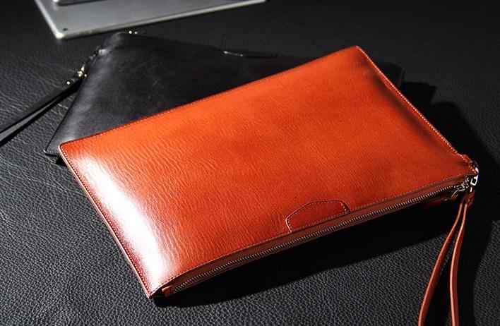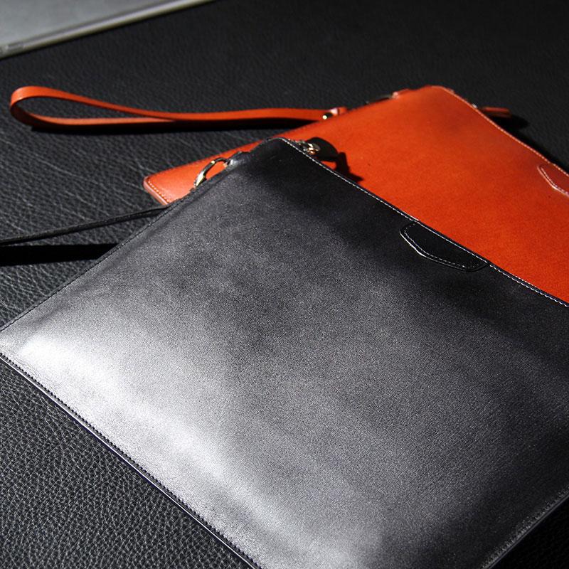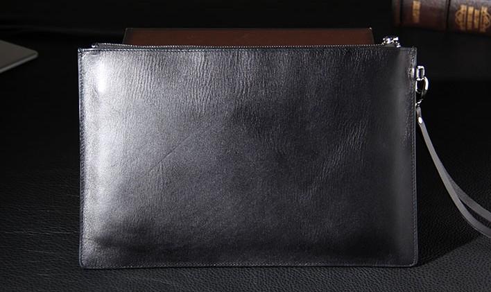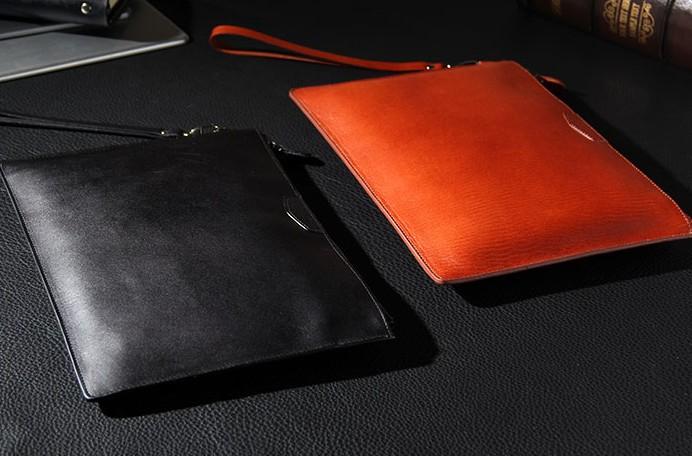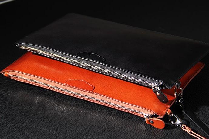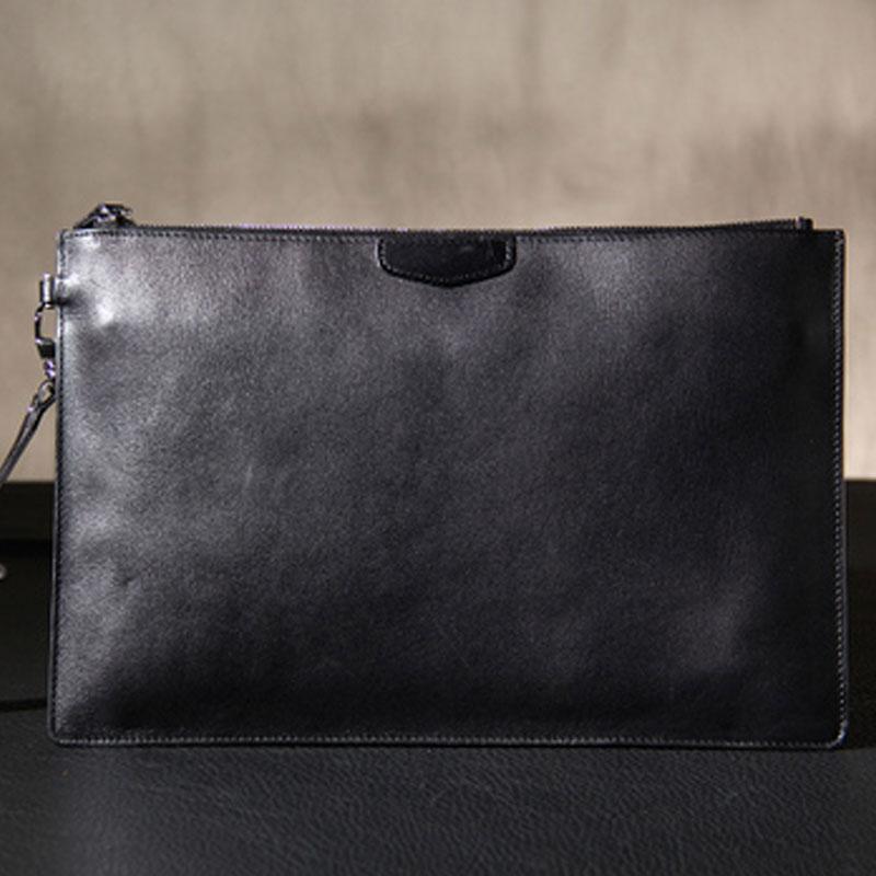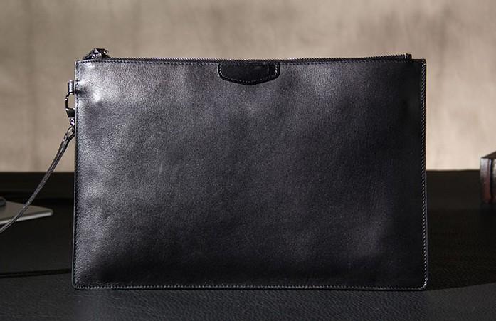 Design: Leather Mens Clutch Wristlet Bag Black Zipper Clutch Wallet for Men
