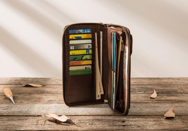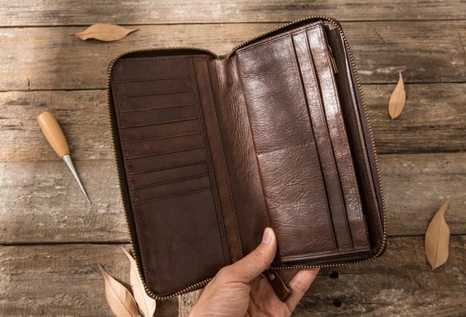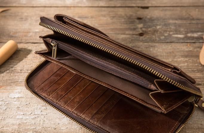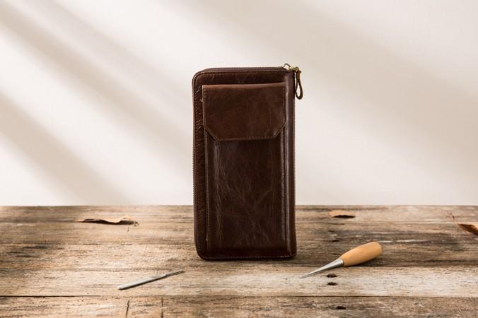 Design: Cool Leather Mens Coffee Long Zipper Clutch Wallet Long Wallet for Men
