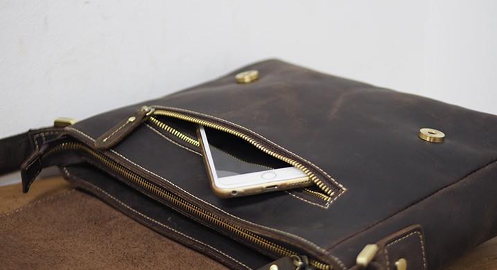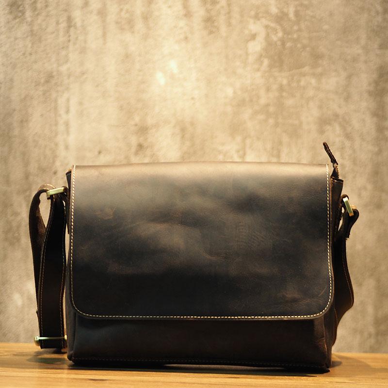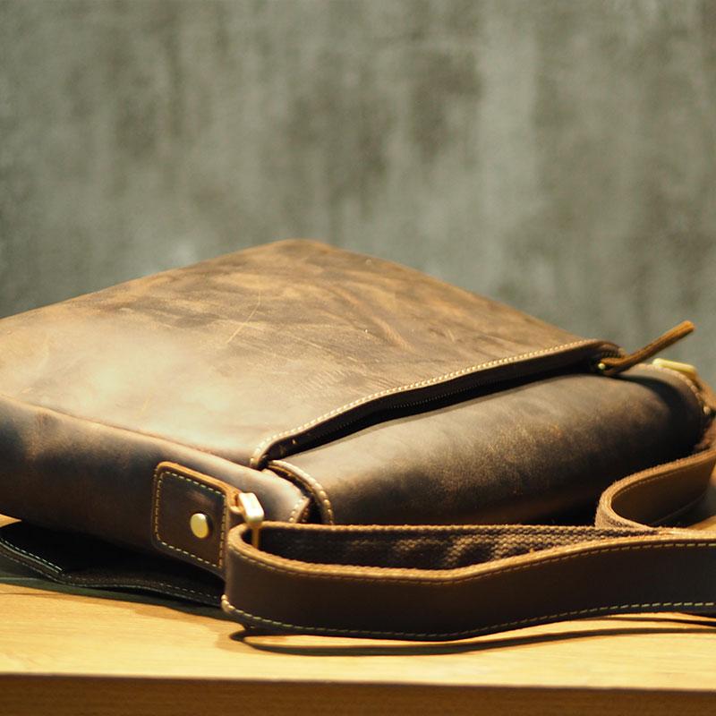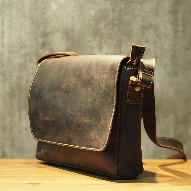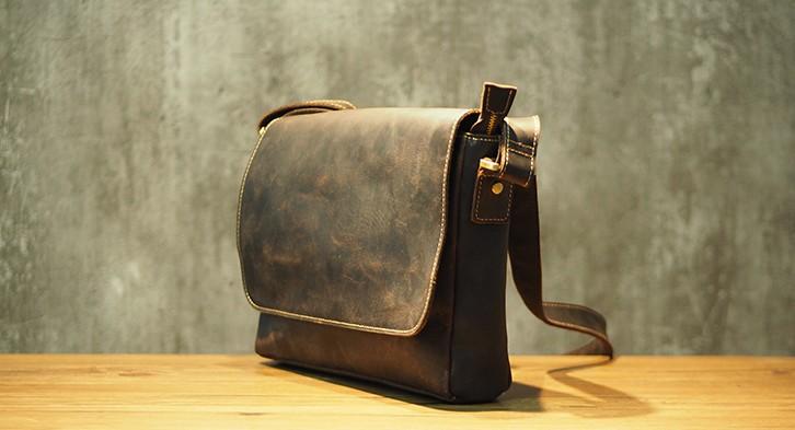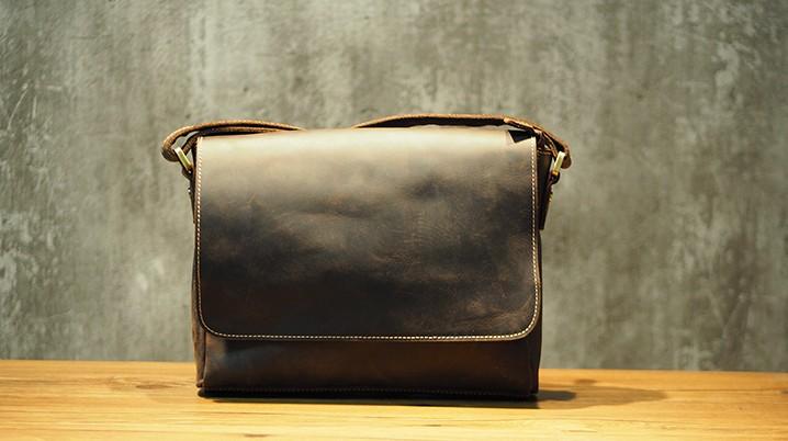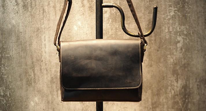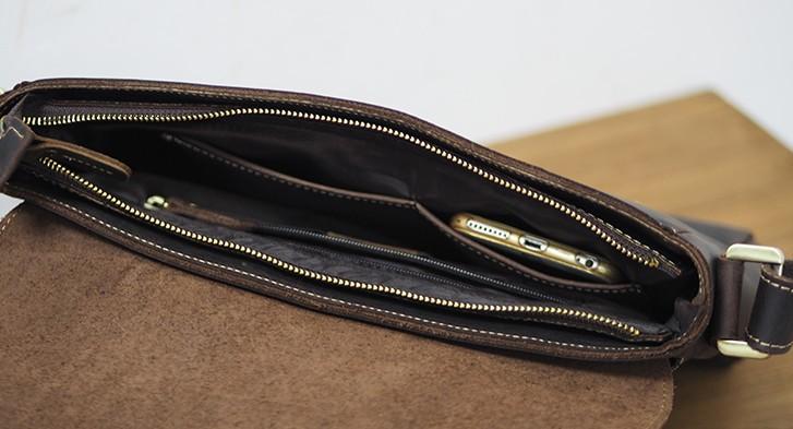 Design: Cool Leather Mens Coffee Messenger Bag Side Bag Small Shoulder Bag for Men