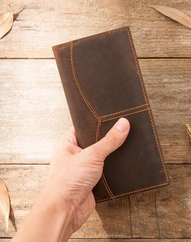 Cool Leather Mens Brown Bifold Long Wallets Long Wallet Clutch Card Wallet for Men