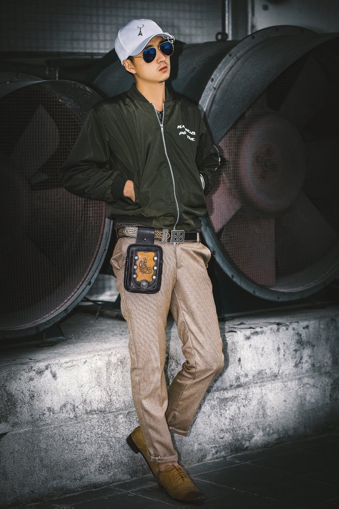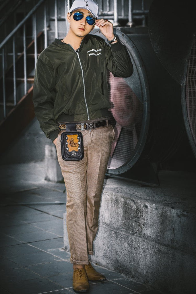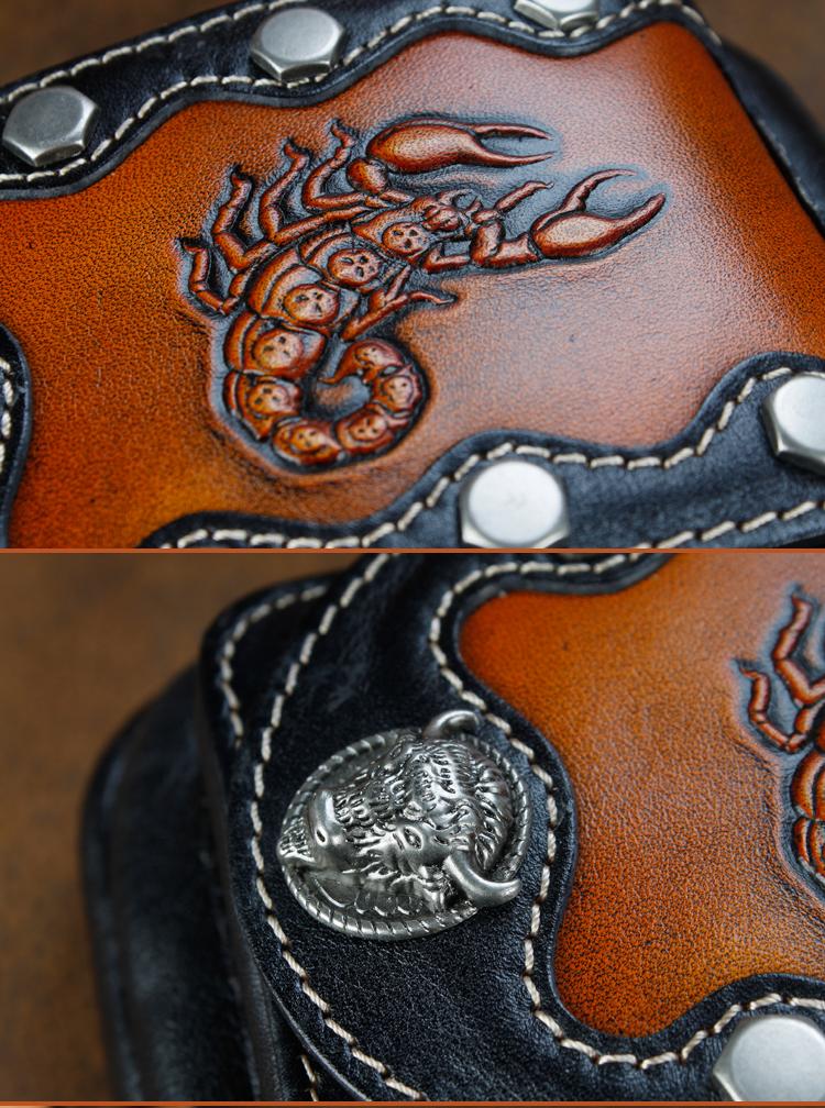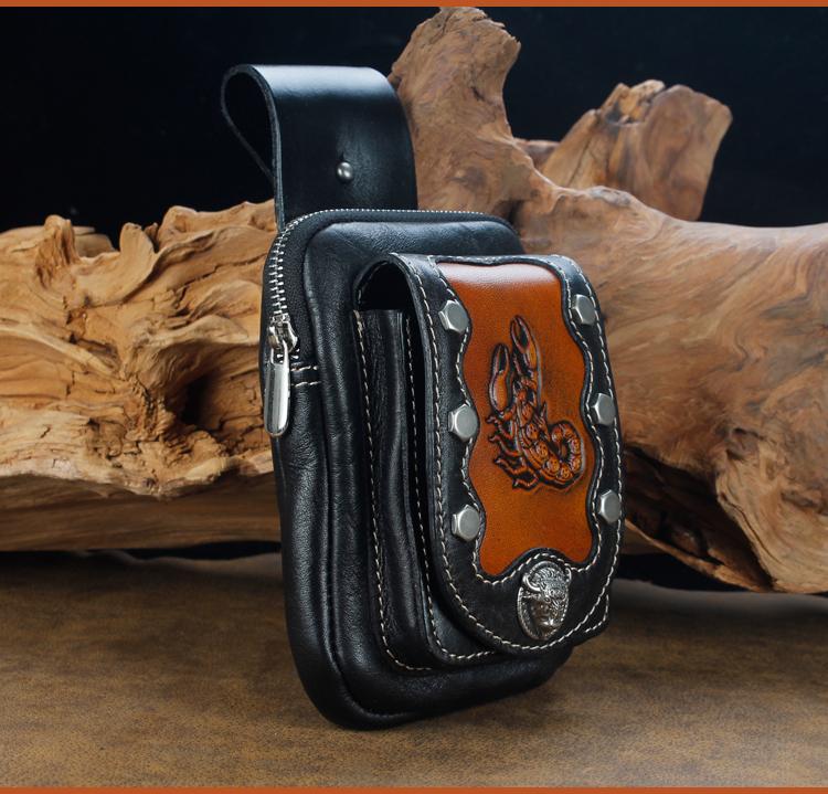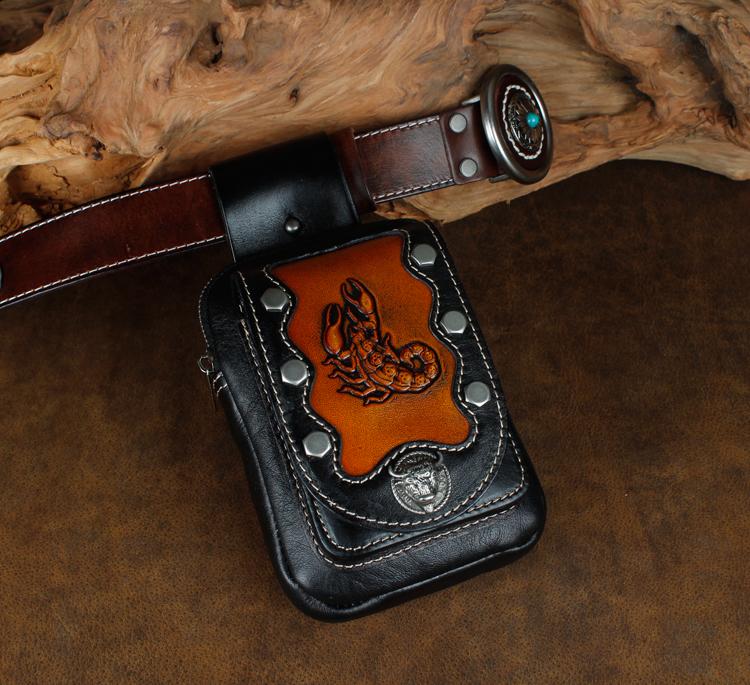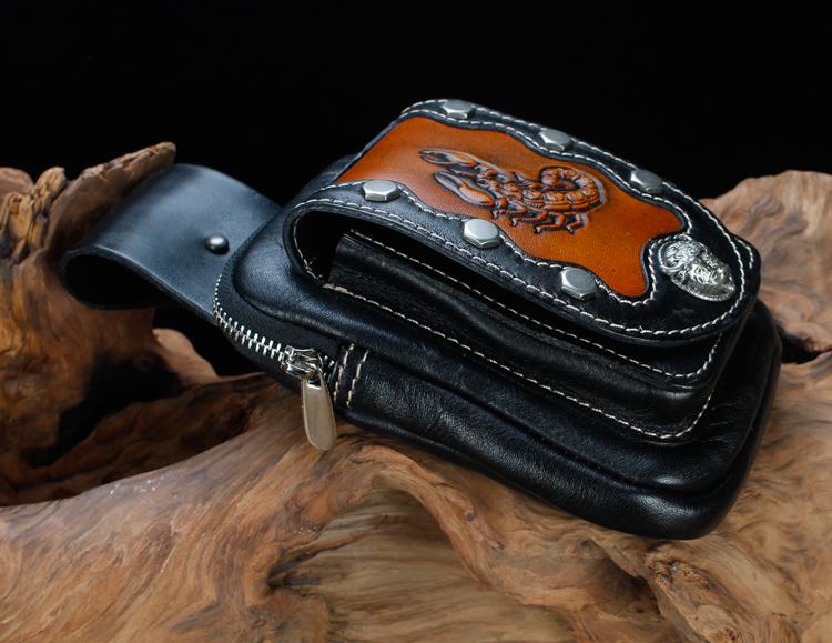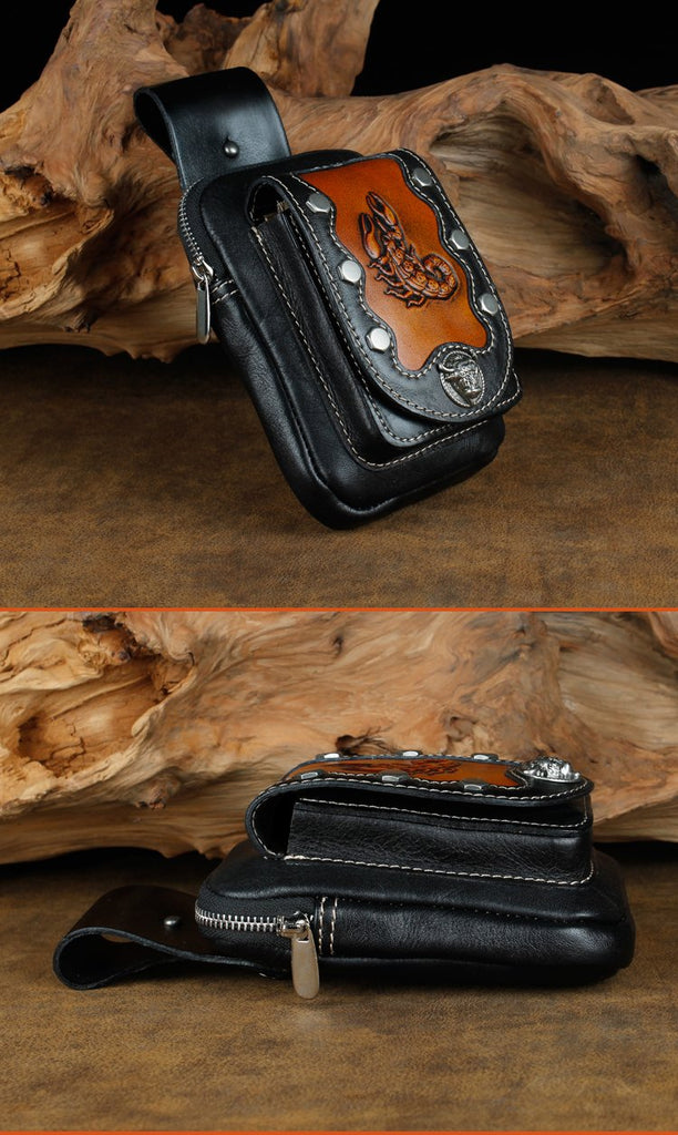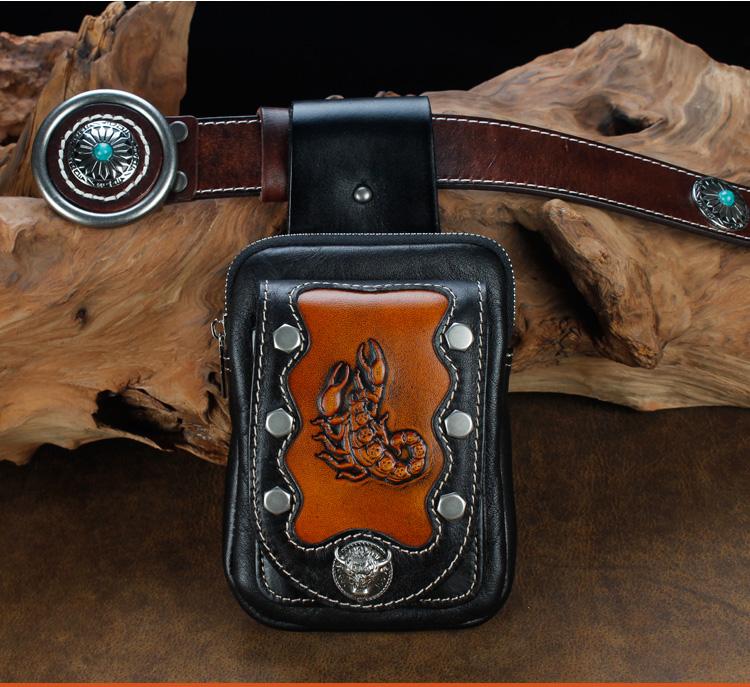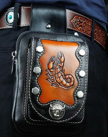 Design: Cool Leather Mens Engraved Scorpion Biker Belt Pouch Waist Bag Drop Leg Bag for Men