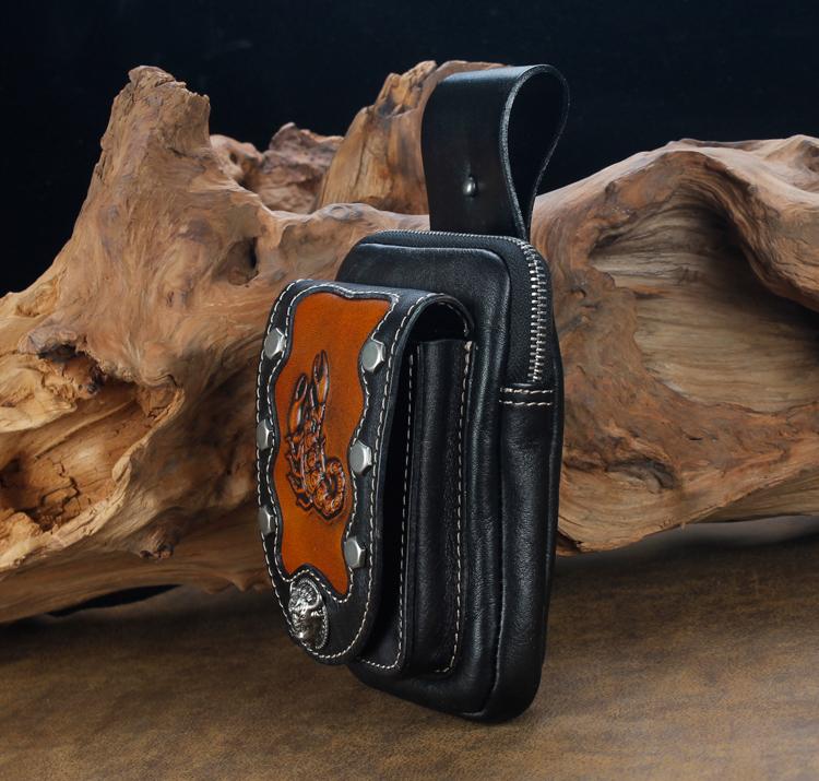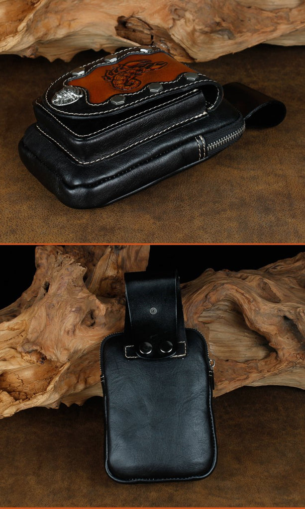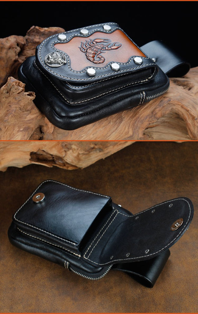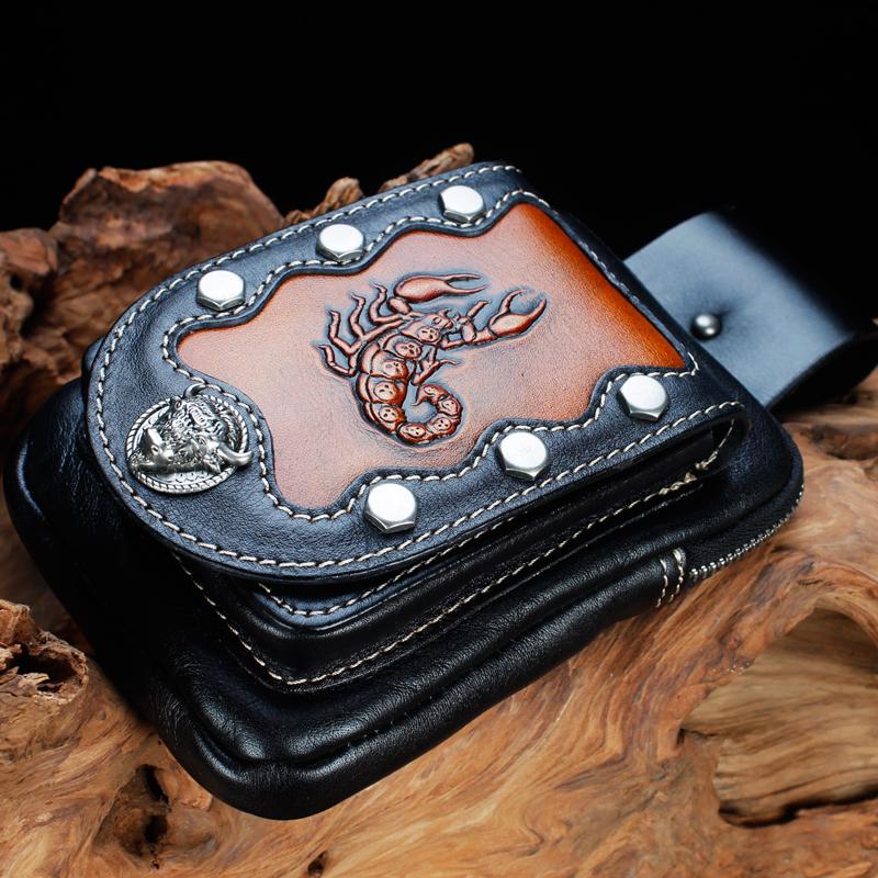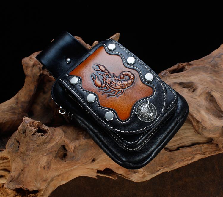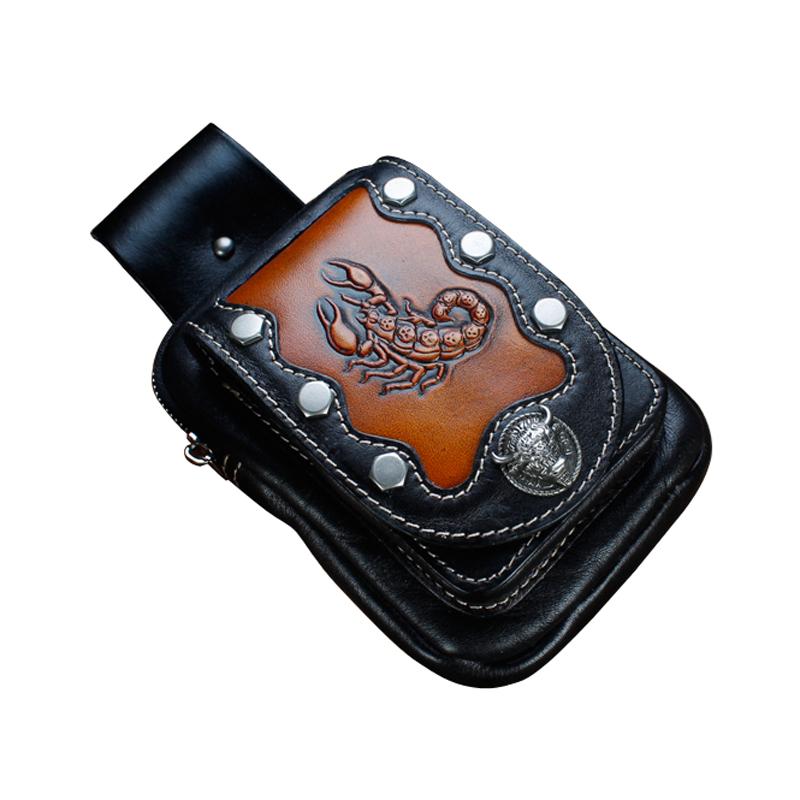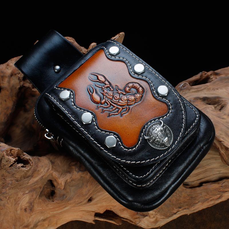 Cool Leather Mens Engraved Scorpion Biker Belt Pouch Waist Bag Drop Leg Bag for Men