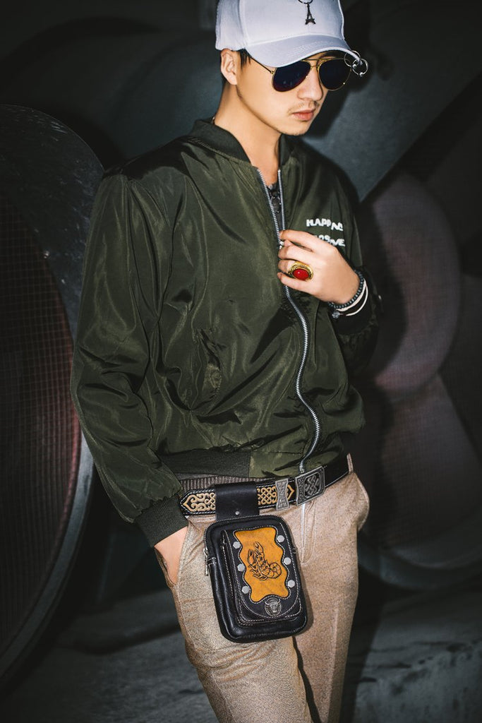 Style: Cool Leather Mens Engraved Scorpion Biker Belt Pouch Waist Bag Drop Leg Bag for Men