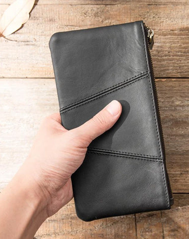 Design: Cool Leather Mens Large Long Zipper Clutch Wallet Long Wallet Phone Bag for Men