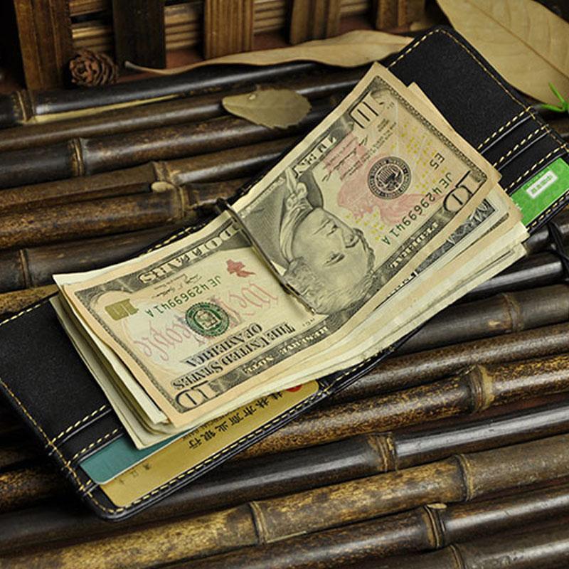 Design: Cool Leather Mens Slim Small Wallet Money Clip Front Pocket Wallet for Men