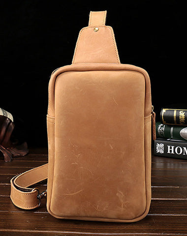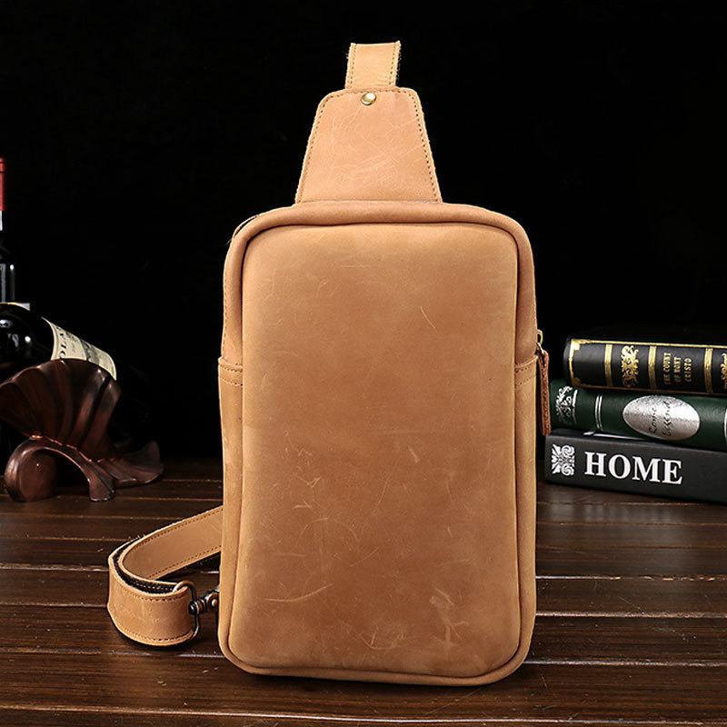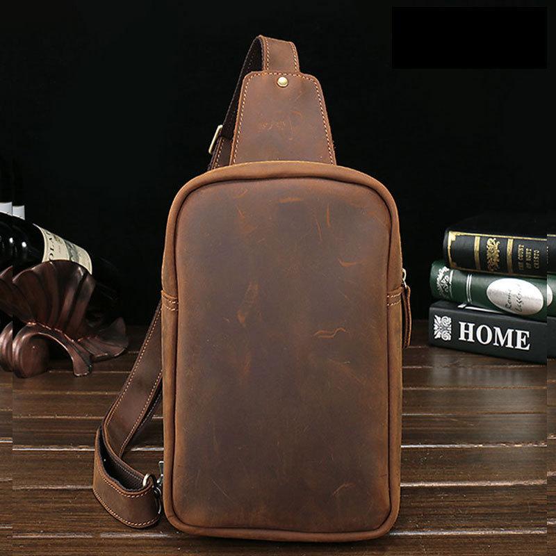 Design: Vintage Leather Mens Sling Shoulder Bag Sling Bag Chest Bag Sling Backpack for men