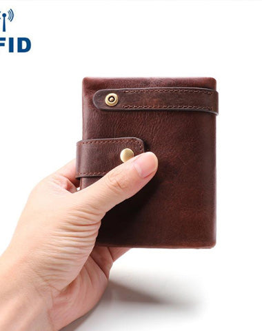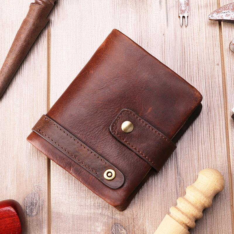 Design: Cool Leather Mens Small Bifold Brown Wallet billfold Wallet Front Pocket Multi-card Wallets for Men