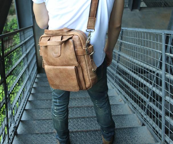 Design: Cool Leather Mens Small Handbag Messenger Bag Shoulder Bag for men