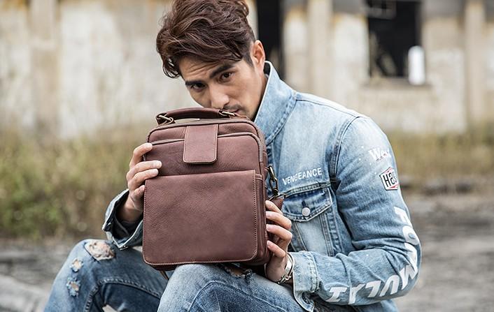 Design: Cool Leather Mens Small Shoulder Bags Messengers Bag for Men