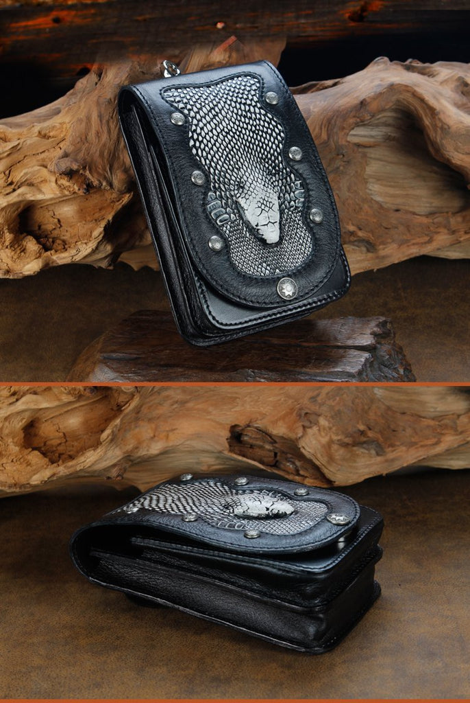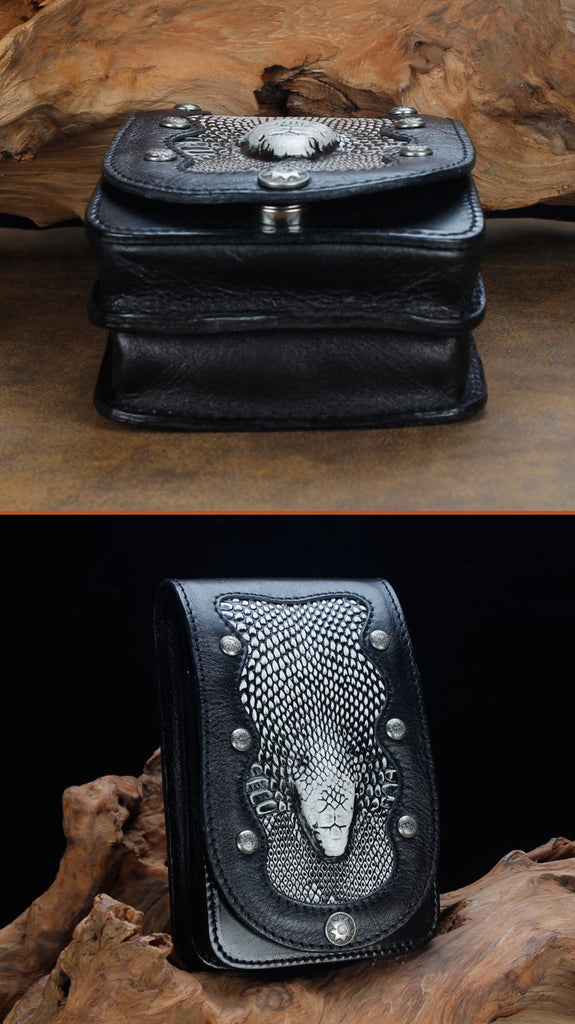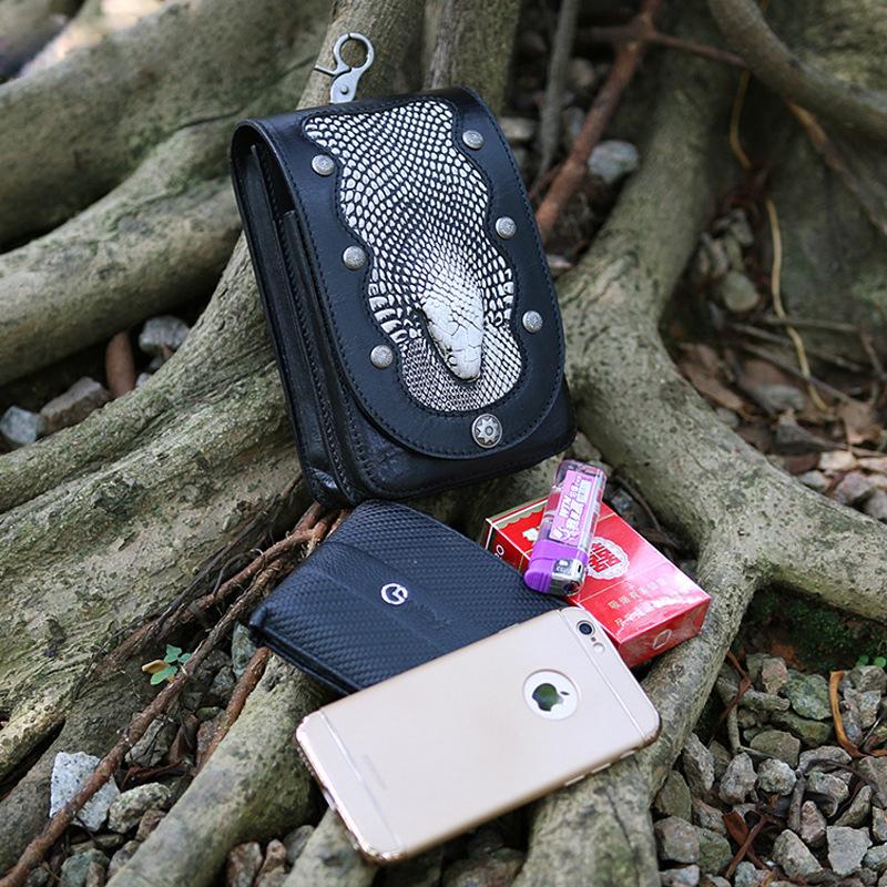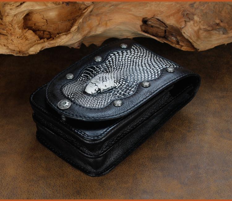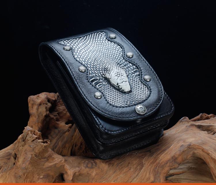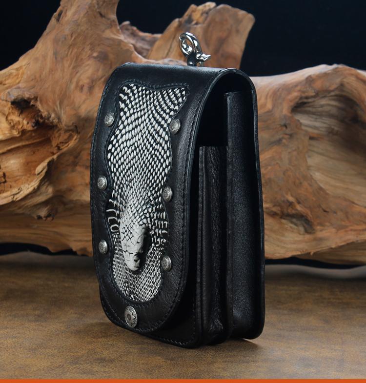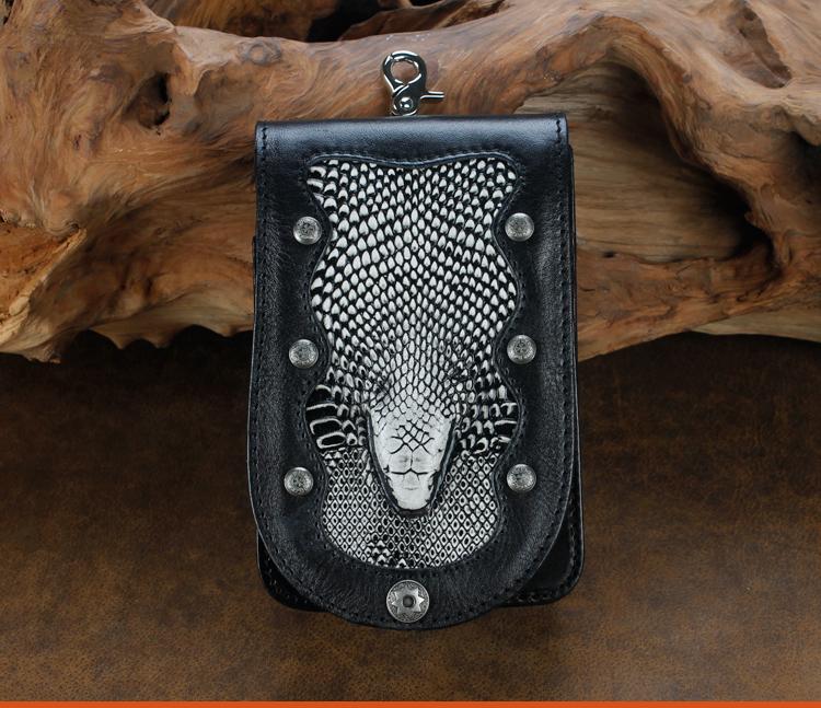 Design: Cool Leather Mens Snake Biker Belt Pouch Waist Bag Drop Leg Bag for Men
