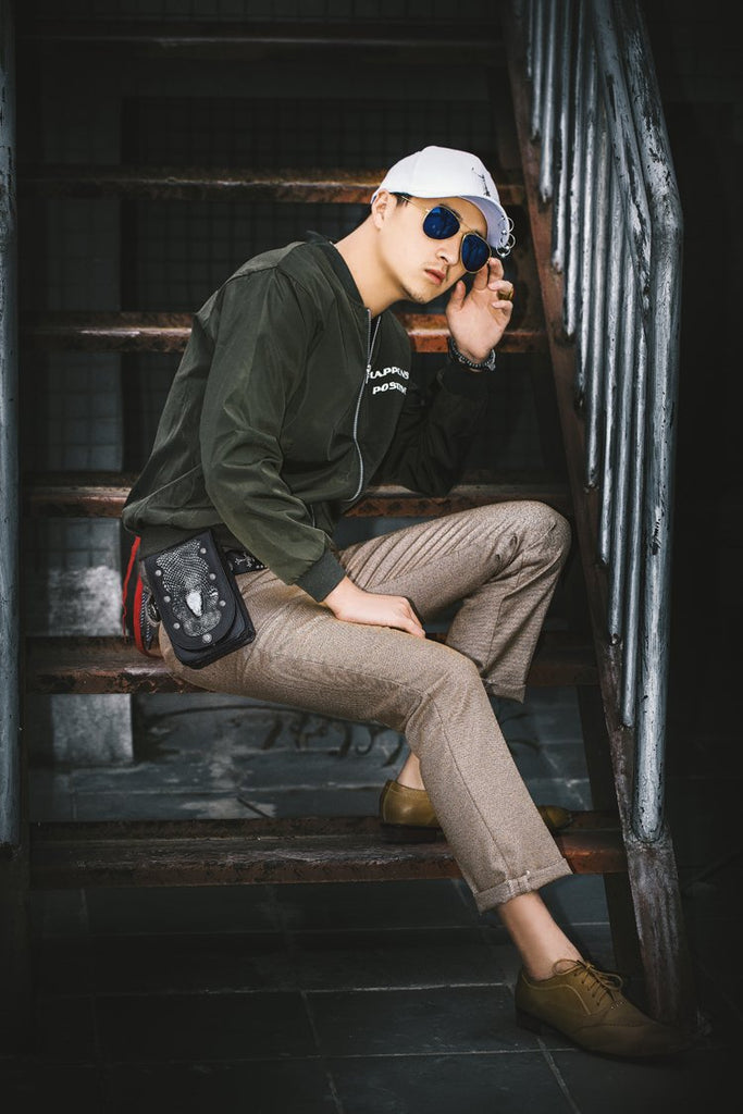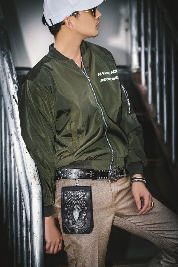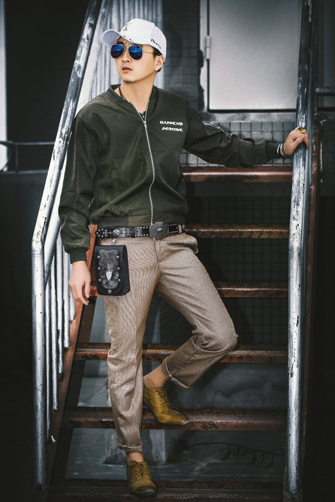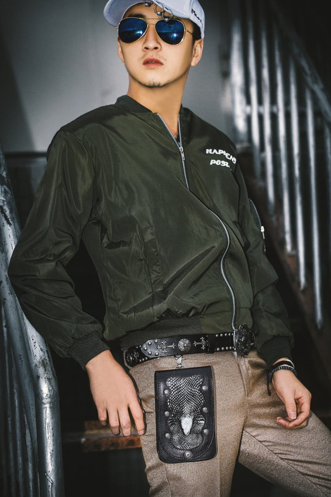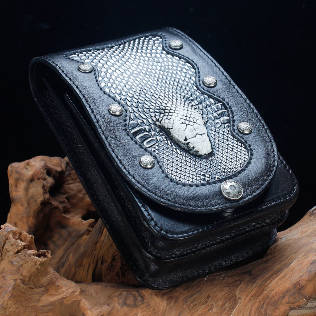 Design: Cool Leather Mens Snake Biker Belt Pouch Waist Bag Drop Leg Bag for Men