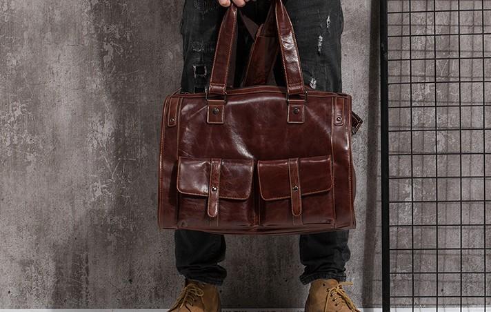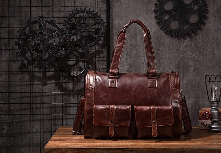 Design: Cool Leather Mens Travel Bag Overnight Bag Work Handbag Business Bag for Men