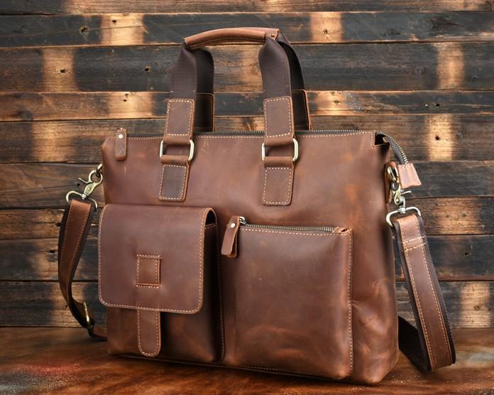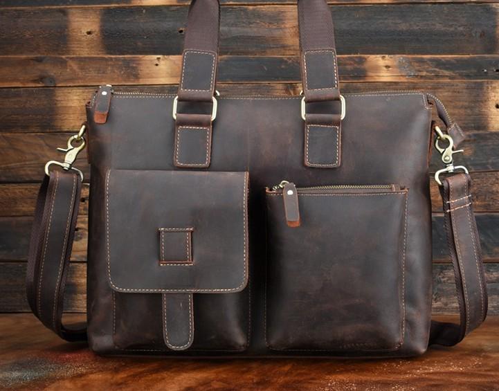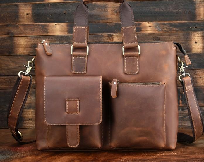 Design: Cool Leather Briefcase 13inch Handbag Work Bag Business Bag Shoulder Bag For Men