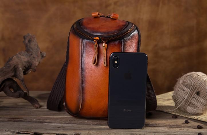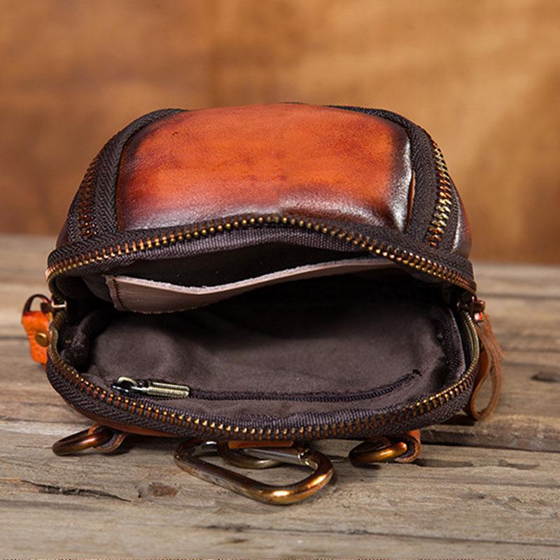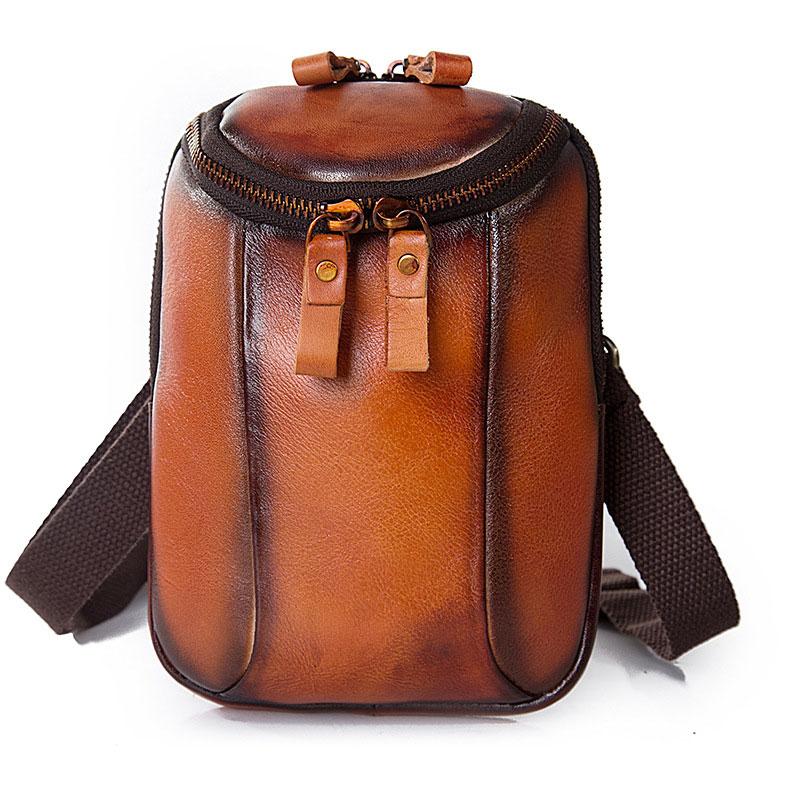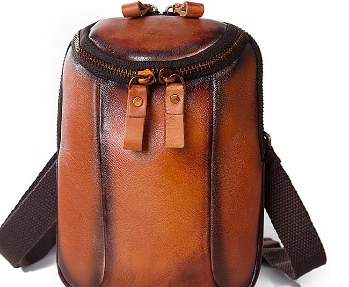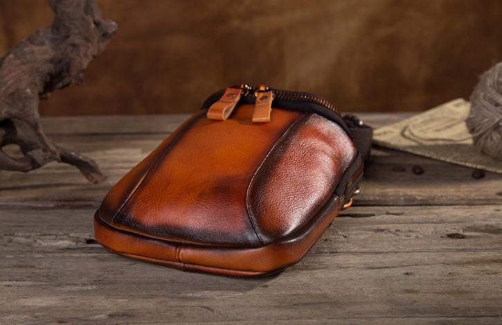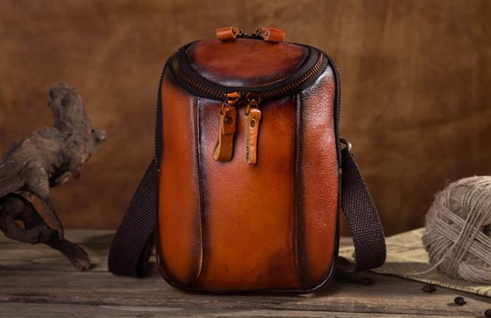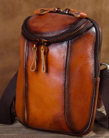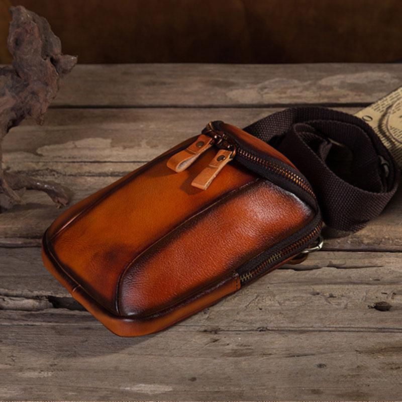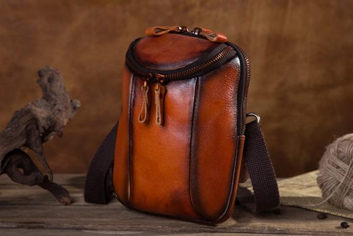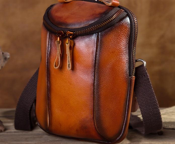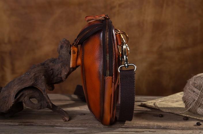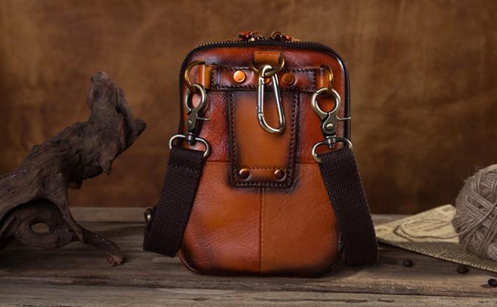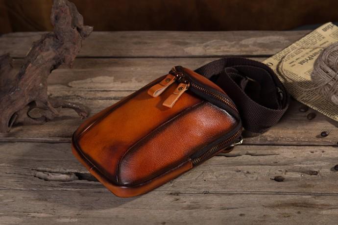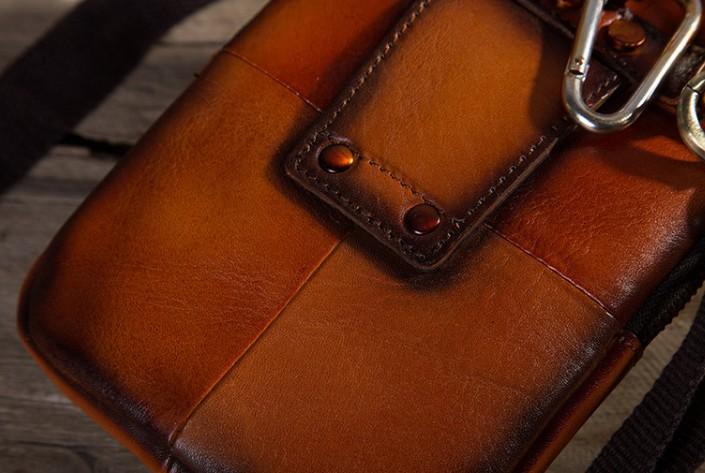 Design: Cool Leather Tan Belt Bag Belt Pouch for Men Mini Shoulder Bag For Men