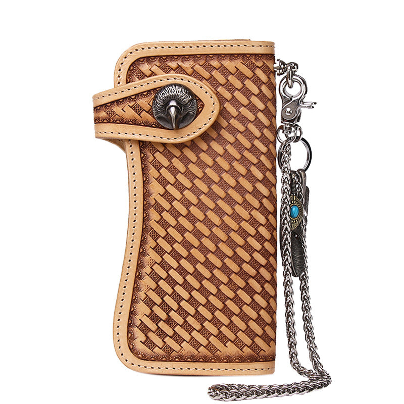 Style: Cool Leather Eagle Tooled Biker Wallet Handmade Biker Chain Wallet for Men