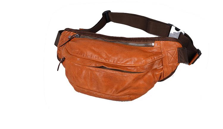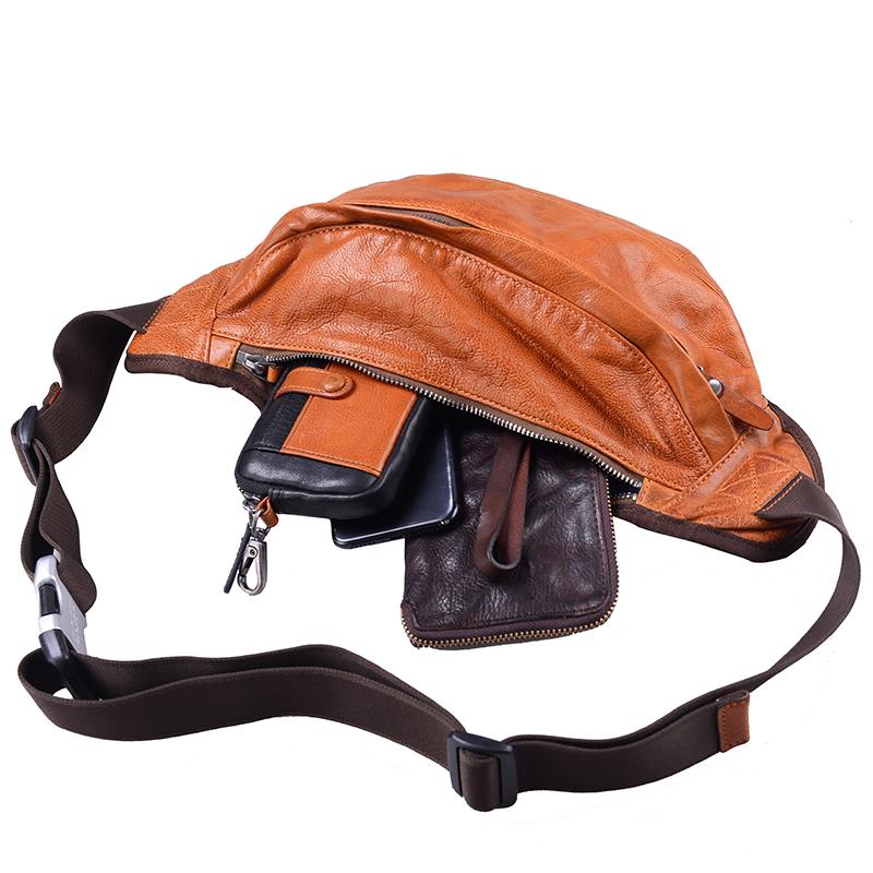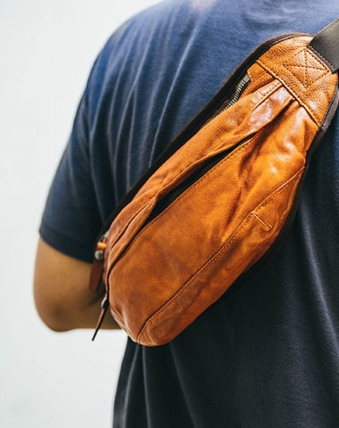 Style: Cool Light Brown Leather Men Chest Bag Waist Bags Tan Fanny Pack Hip Bag Bum Pack For Men