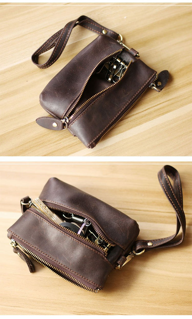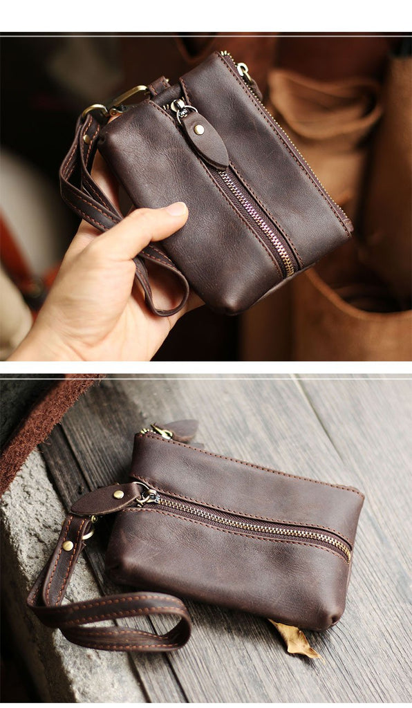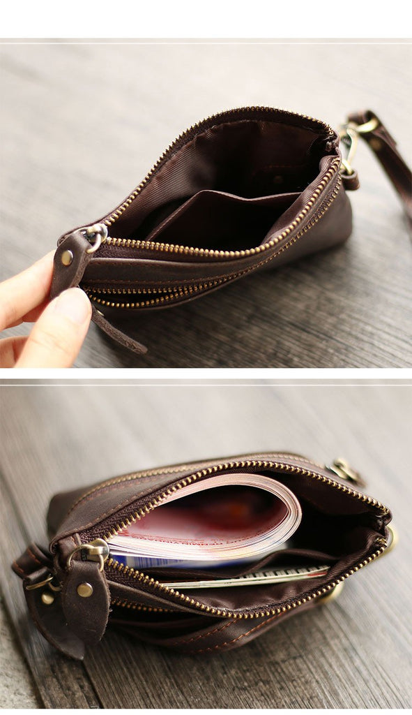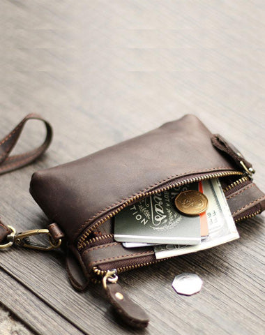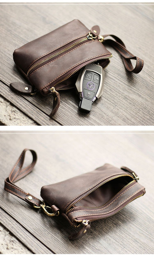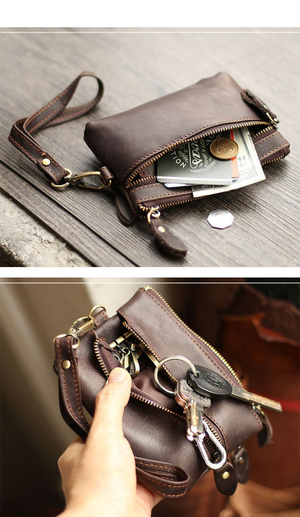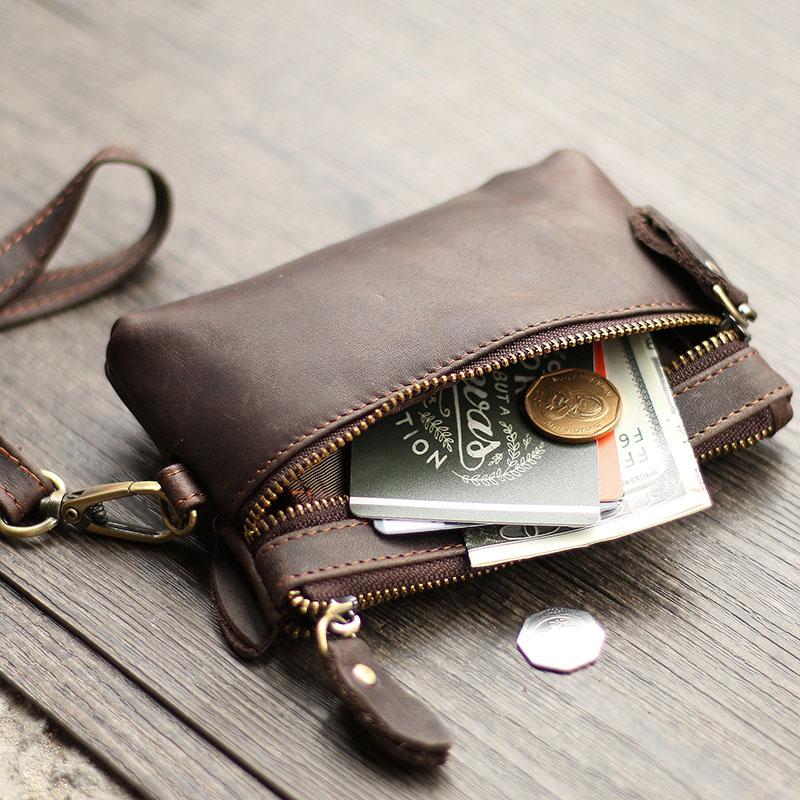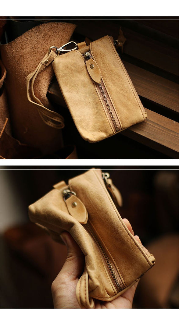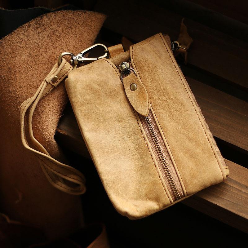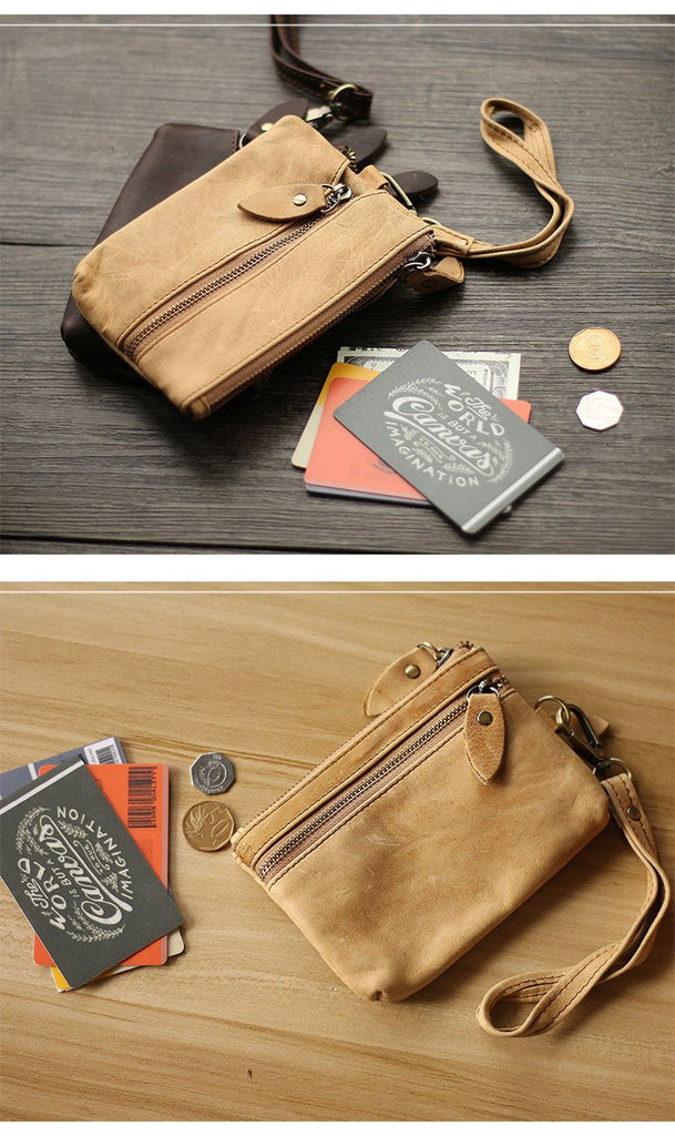 Design: Cool Light Brown Leather Mens Card billfold Wallet Coin Purse Wristlet Car Key Wallet For Men