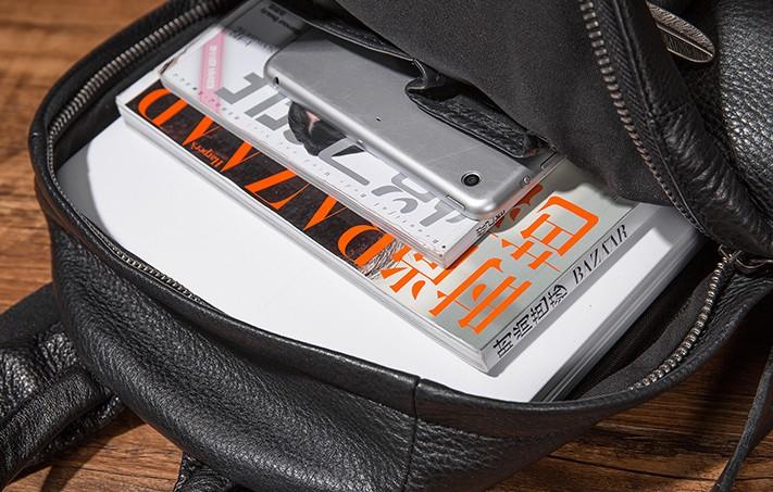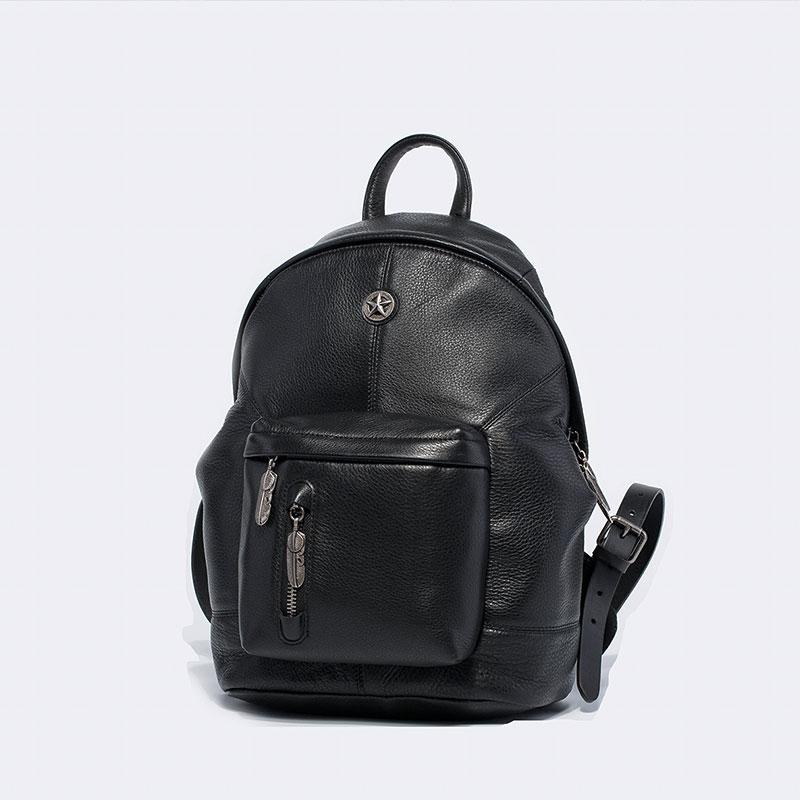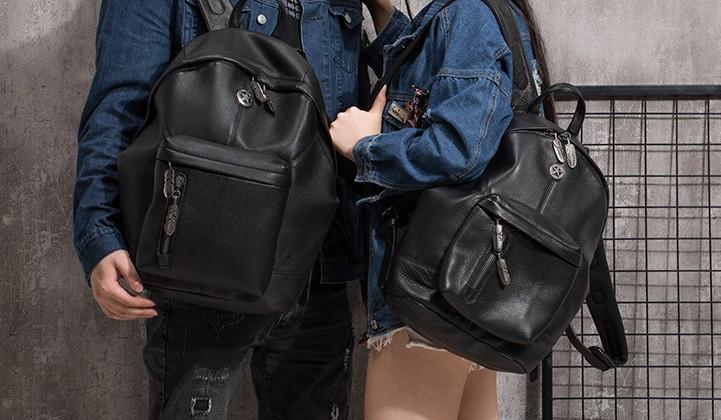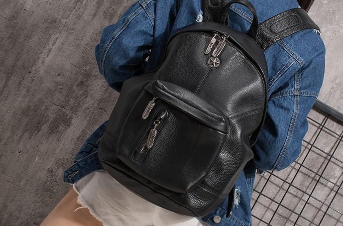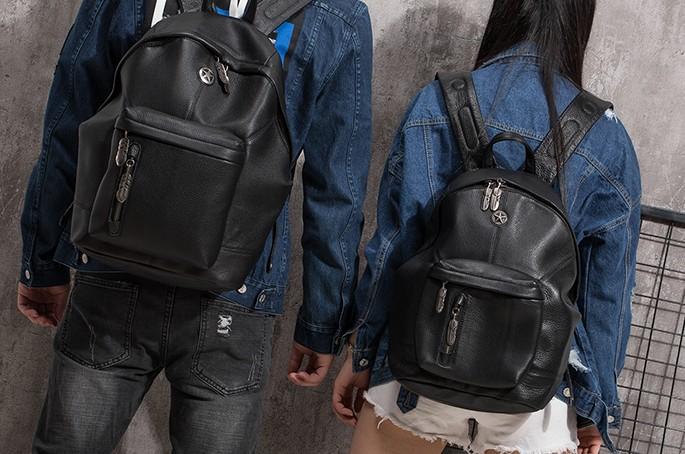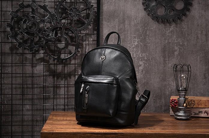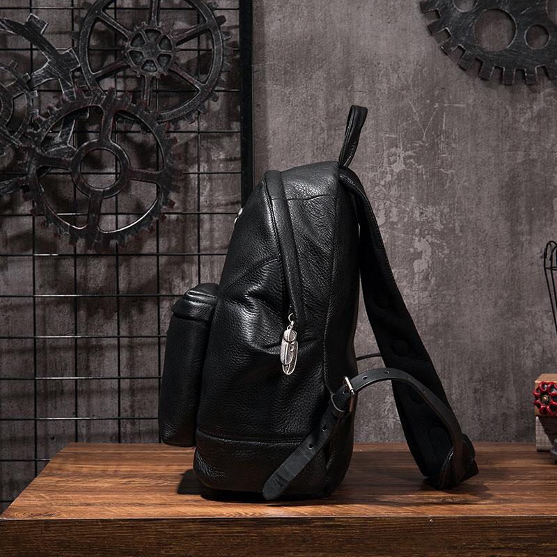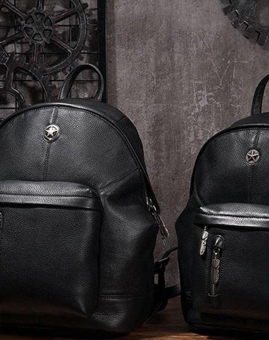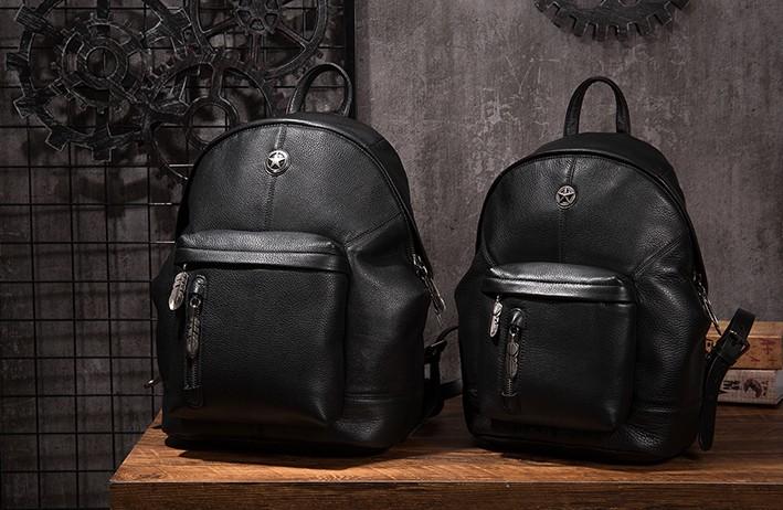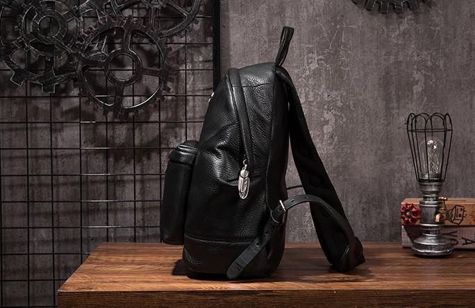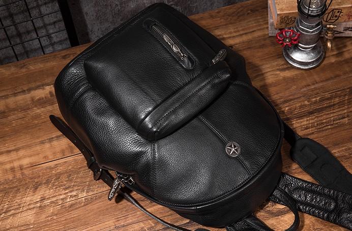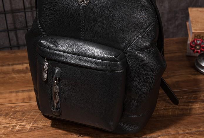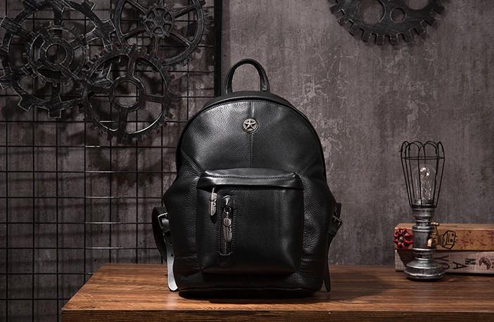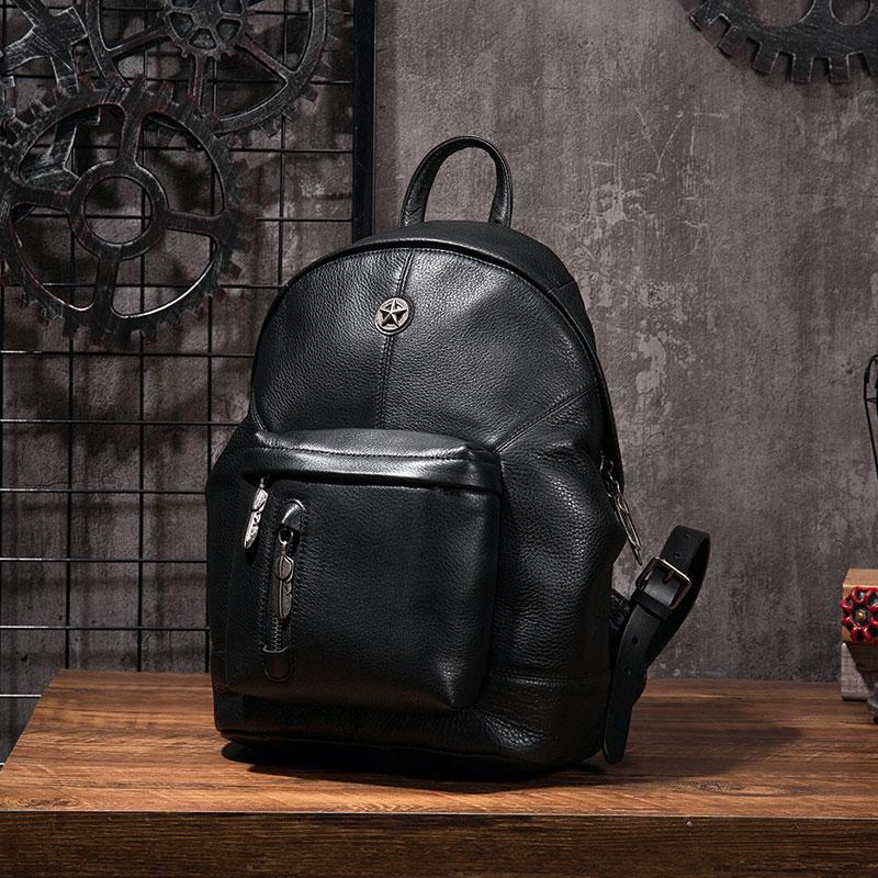 Style: Cool Mens Black Leather School Backpack Travel Backpack Leather Hiking Backpack for Men