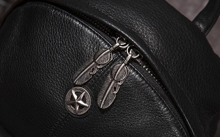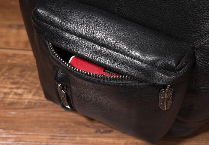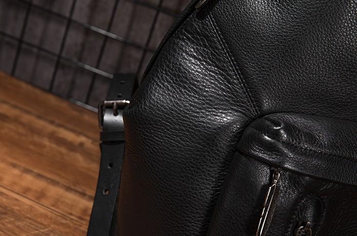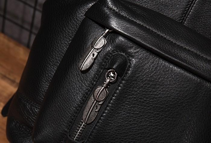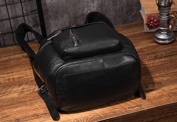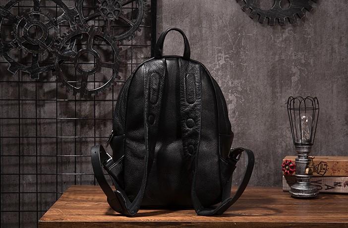 Design: Cool Mens Black Leather School Backpack Travel Backpack Leather Hiking Backpack for Men