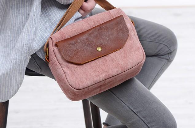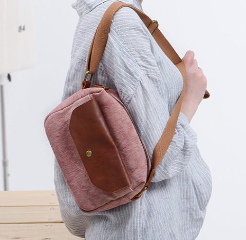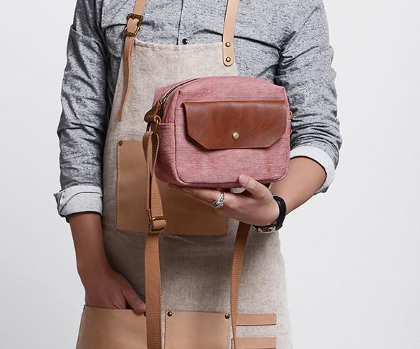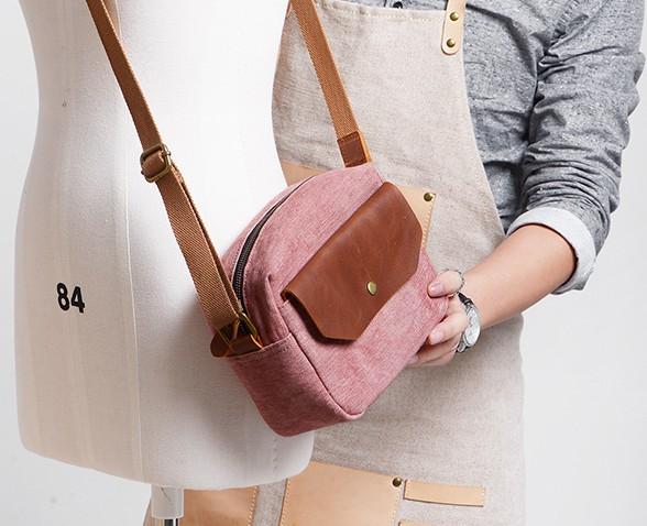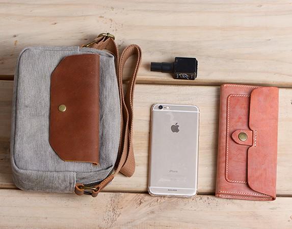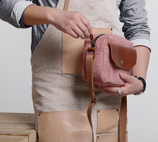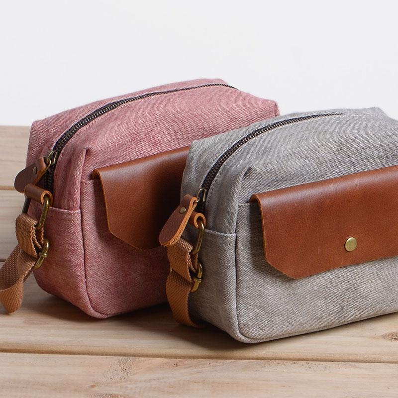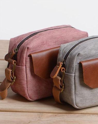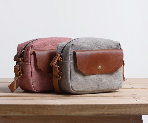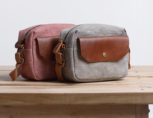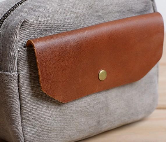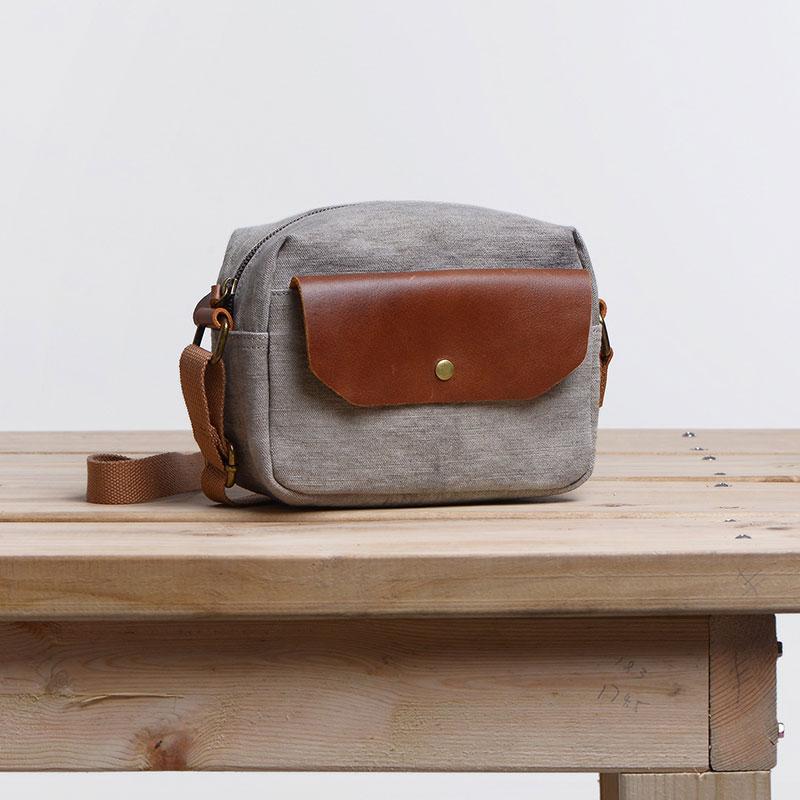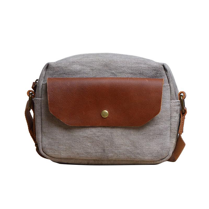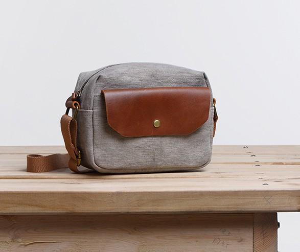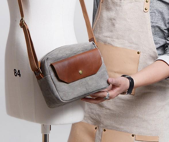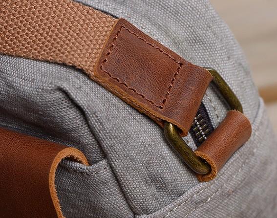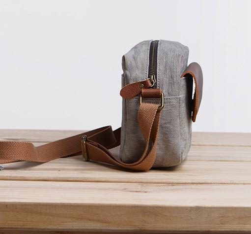 Design: Cool Mens Canvas Leather Side Bag Gray Courier Bag Messenger Bag for Men