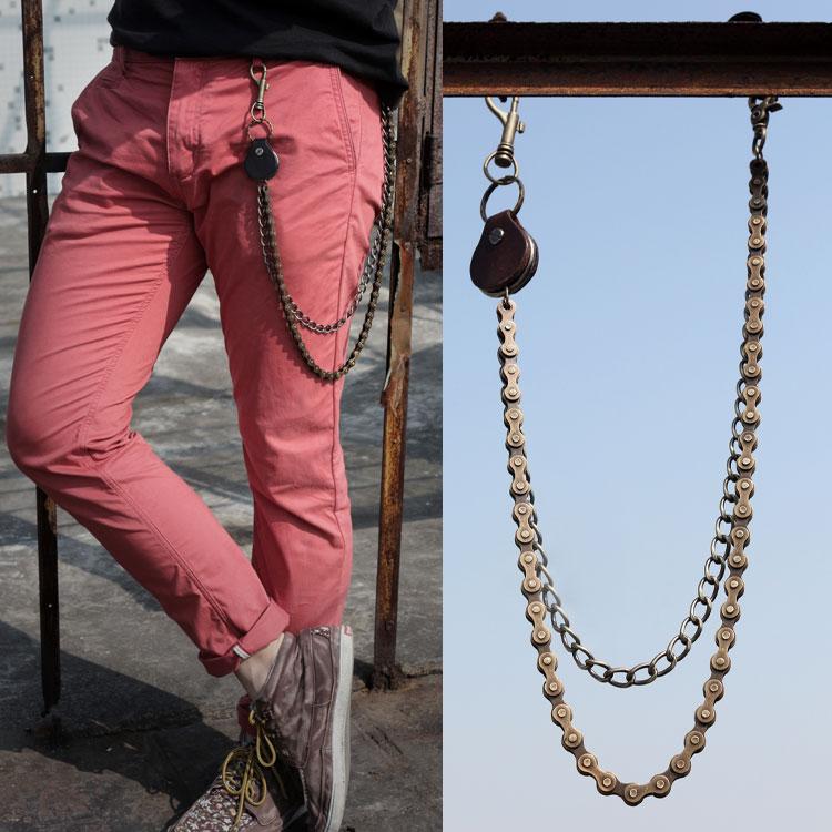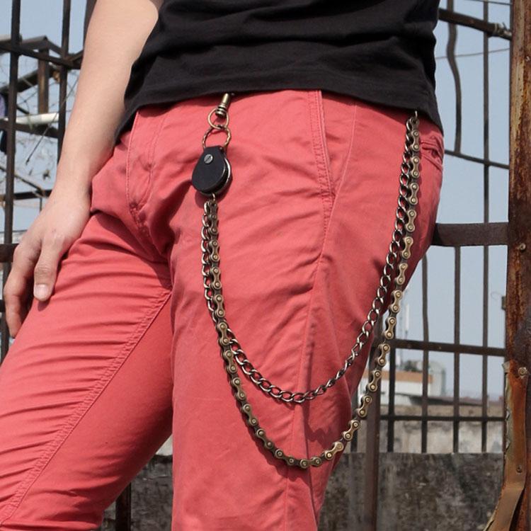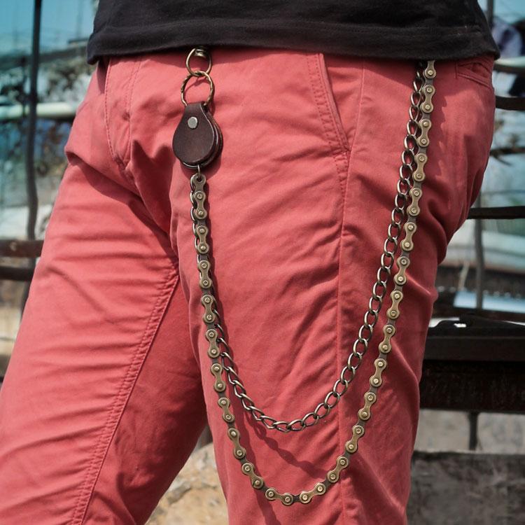 Style: Cool Men's Brass Double Silver Long Biker Wallet Chain Pants Chain For Men