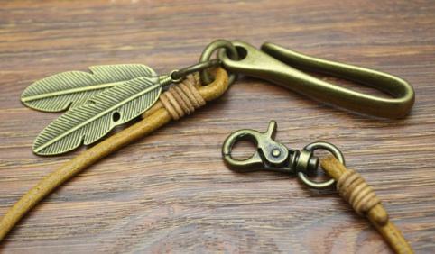 Style: Cool Men's Feather Leather Key Chain Pants Chain Biker Wallet Chain For Men