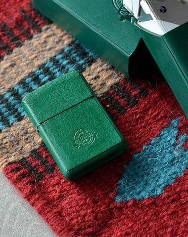 Cool Mens Green Leather Zippo Lighter Case Handmade Custom Zippo lighter Holder for Men