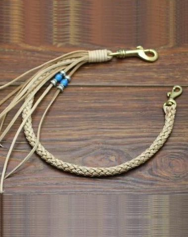Design: Cool Men's Handmade Black Leather Braided Pants Chain Biker Wallet Chain For Men