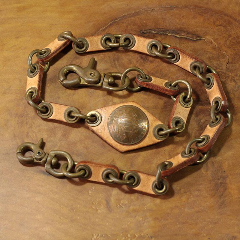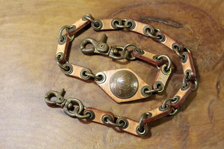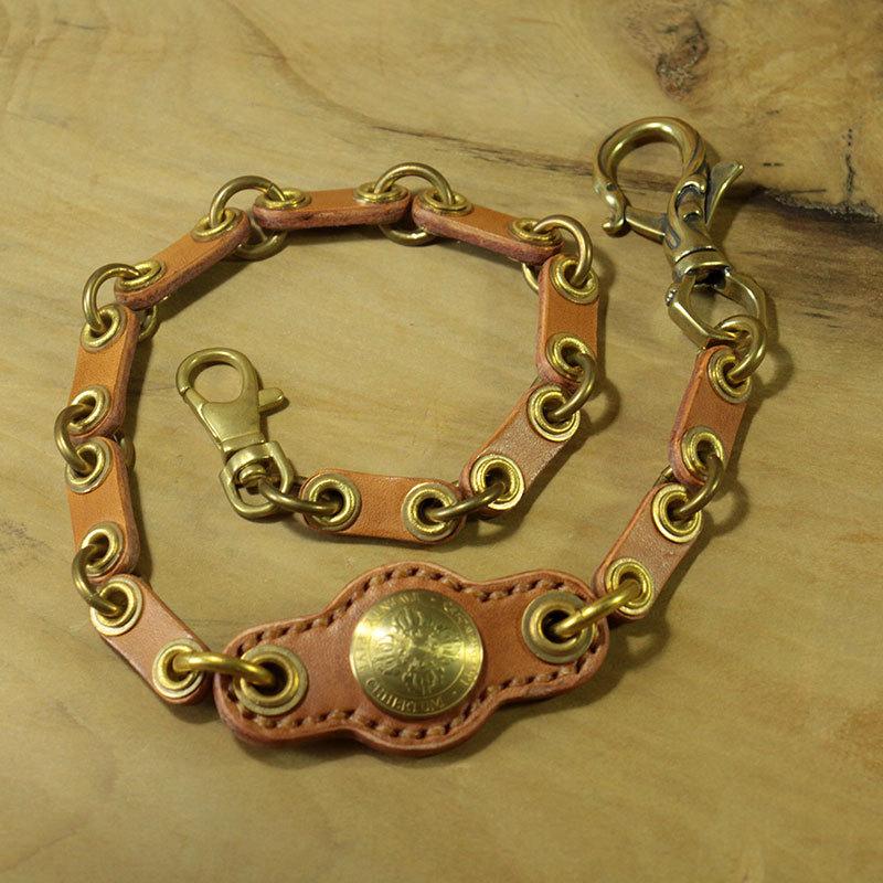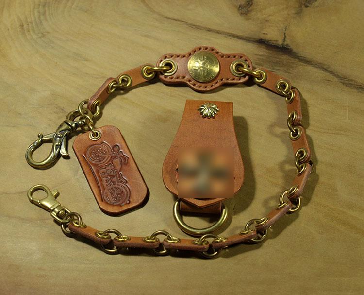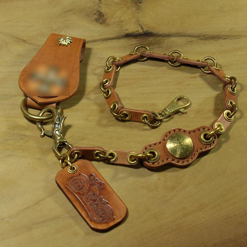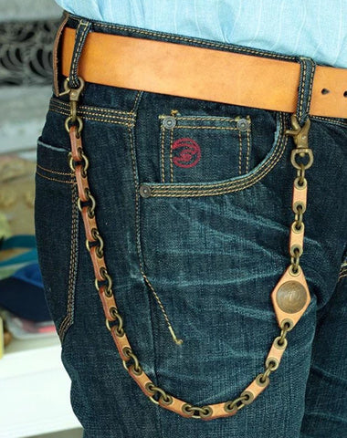 Design: Cool Men's Handmade Leather Brass Anti-Theft Pants Black Chain Biker Wallet Chains For Men