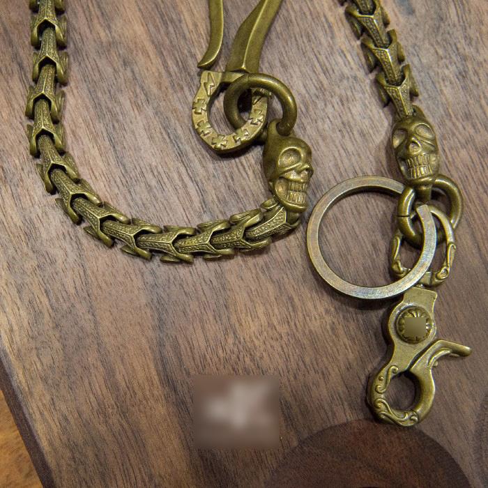 Style: Cool Men's Handmade Pure Brass Smiling Skull Key Chain Pants Chains Biker Wallet Chain For Men