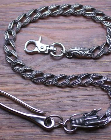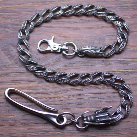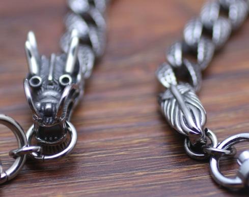 Style: Cool Men's Handmade Stainless Steel Chinese Dragon Biker Wallet Chain Pants Chain Wallet Chain For Men