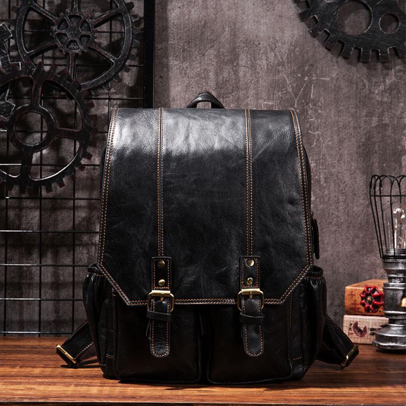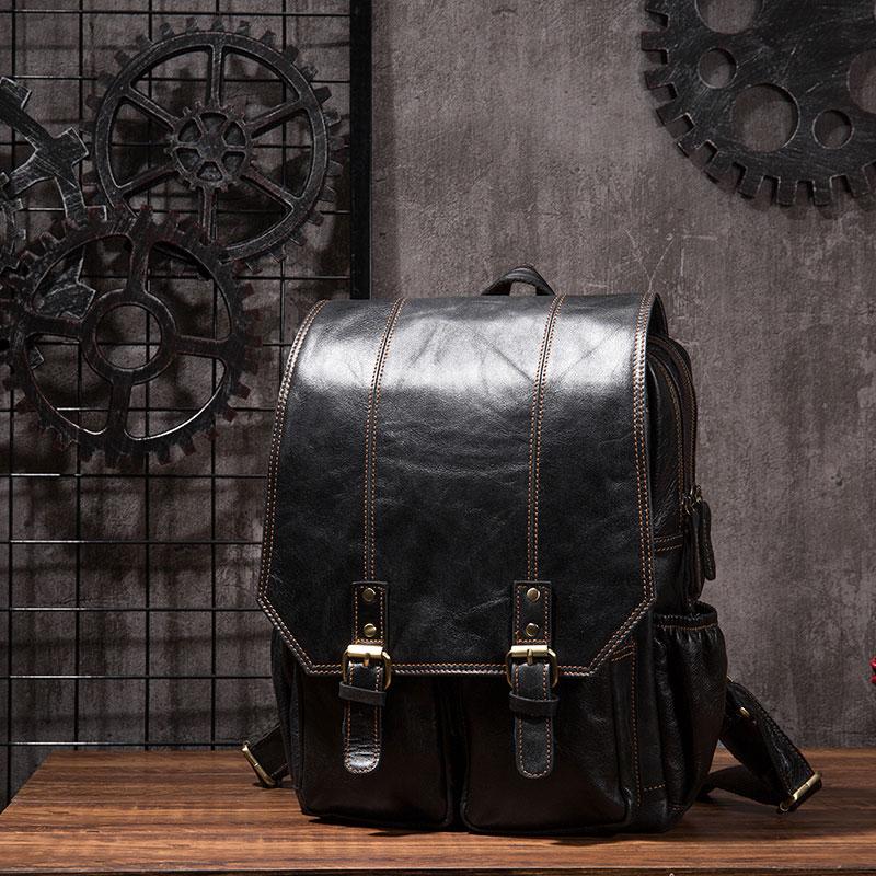 Style: Cool Mens Leather 15inch Laptop Backpack Travel Backpack Leather School Backpacks for Men