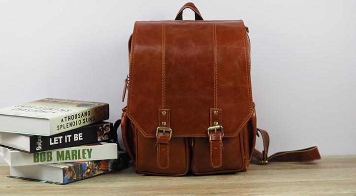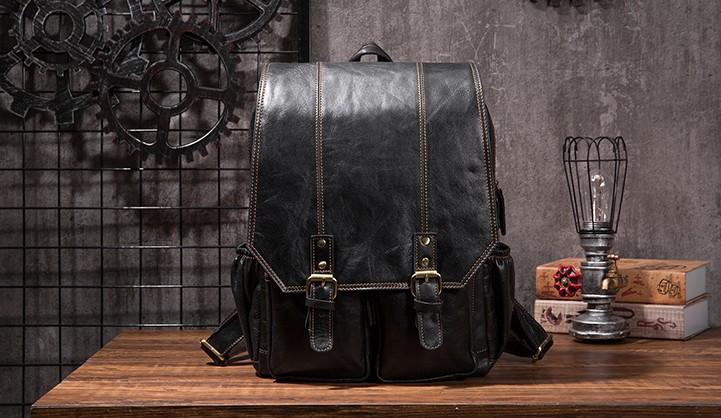 Design: Cool Mens Leather 15inch Laptop Backpack Travel Backpack Leather School Backpacks for Men
