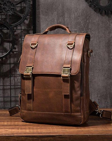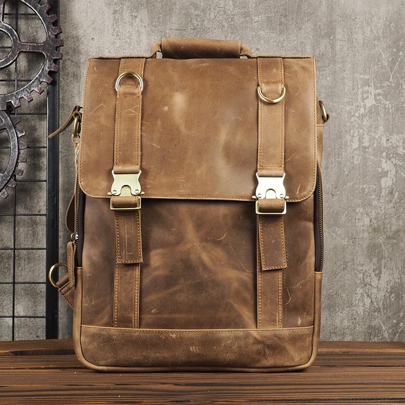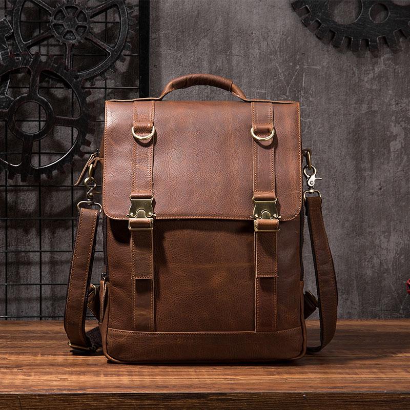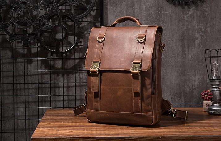 Style: Cool Mens Leather Backpack School Backpack Leather Laptop Backpack for Men