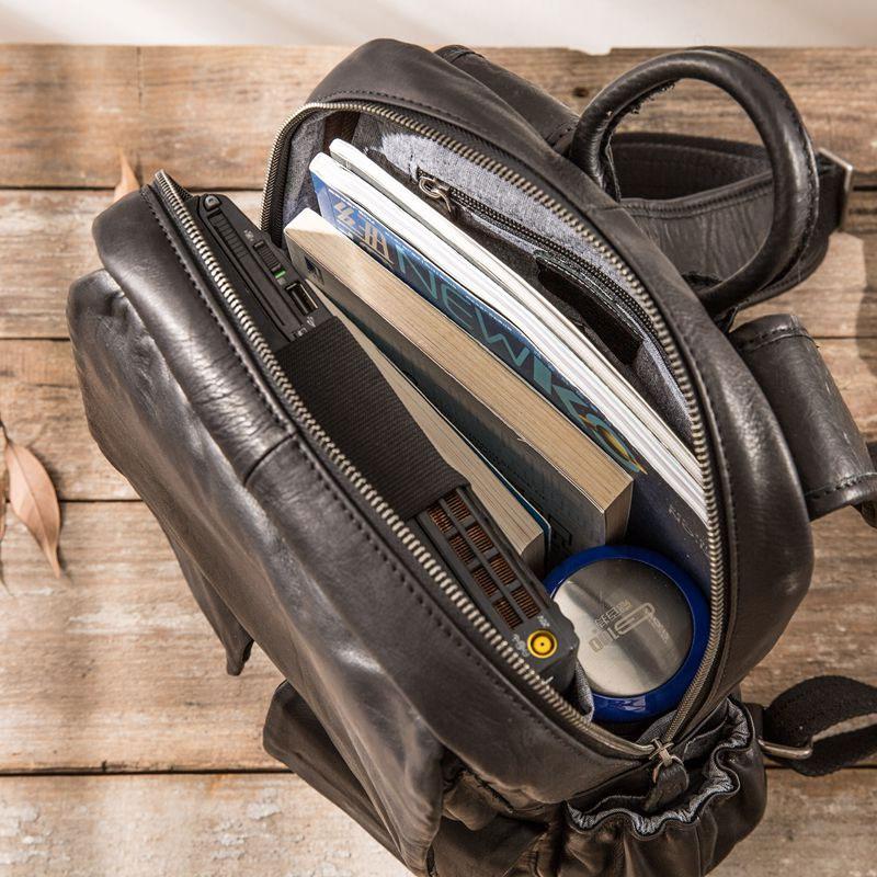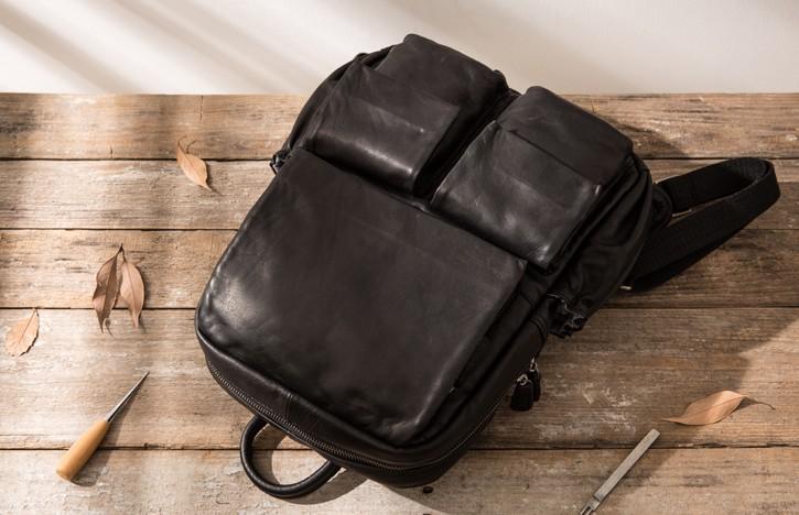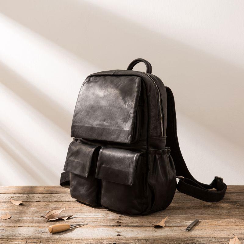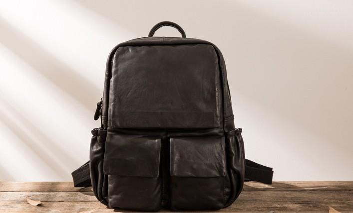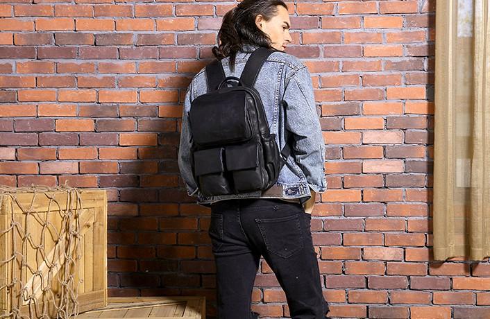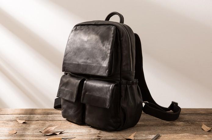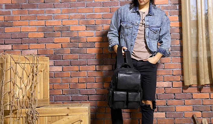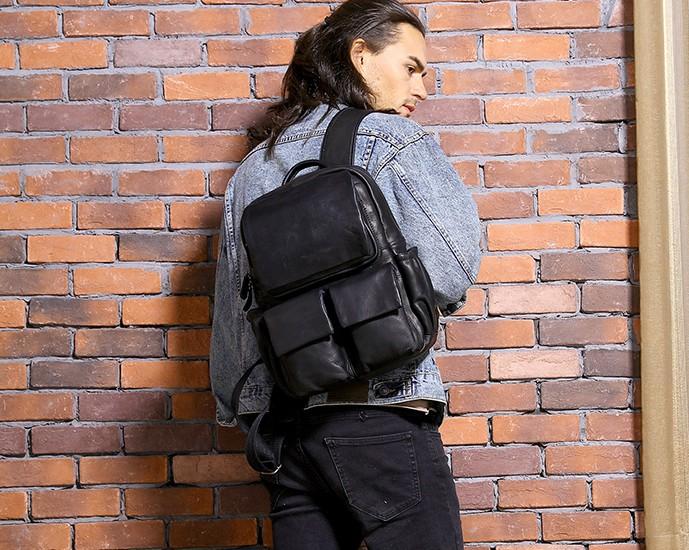 Design: Black Cool Mens Leather Backpacks Travel Backpacks Laptop Backpack for men