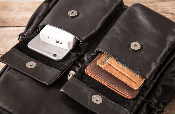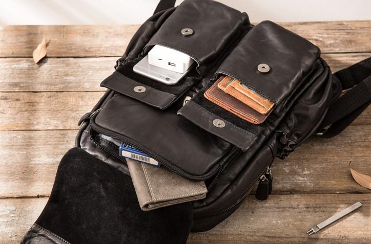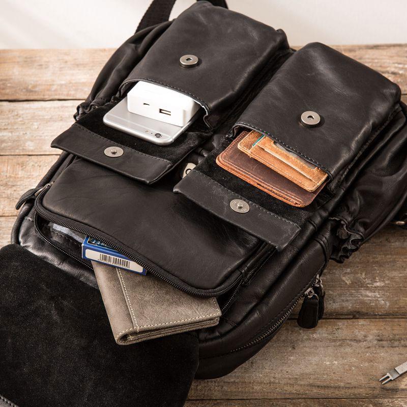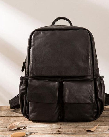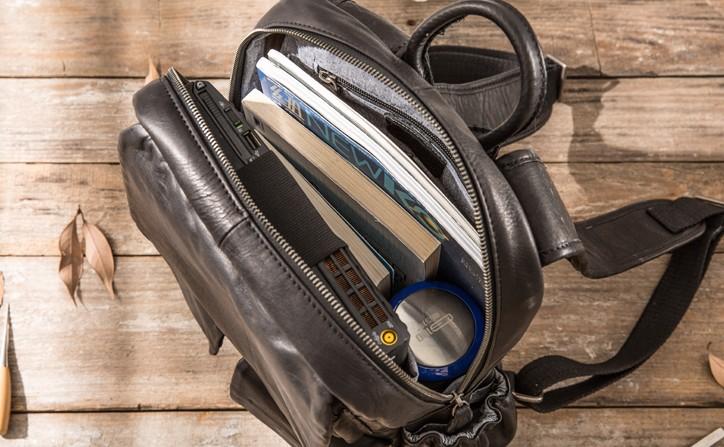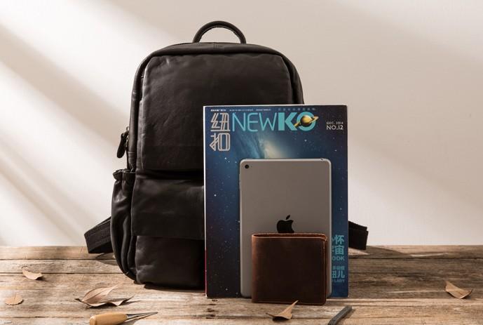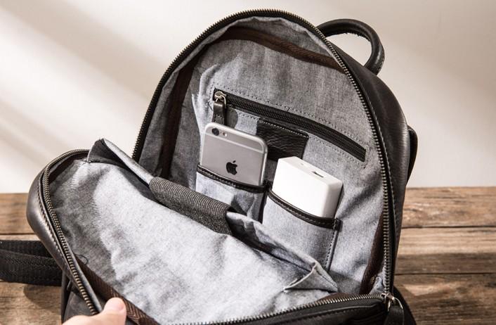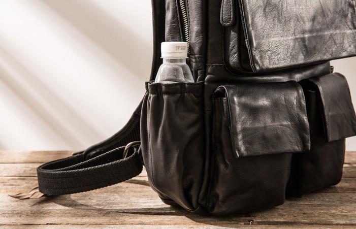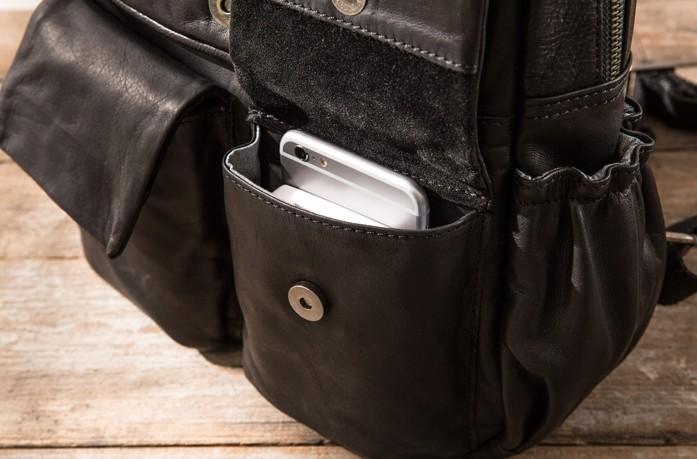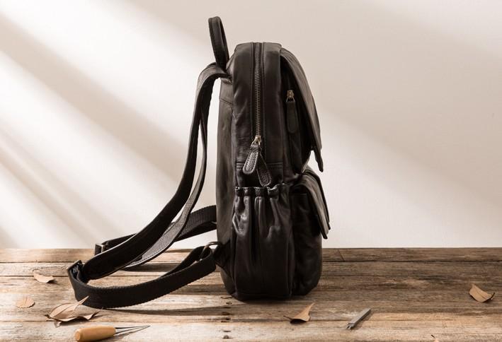 Design: Black Cool Mens Leather Backpacks Travel Backpacks Laptop Backpack for men