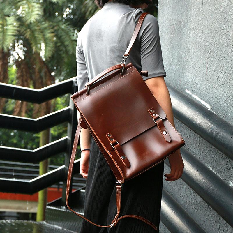 Style: Cool Coffee Mens Leather Backpack Travel Backpacks Laptop Backpacks for men