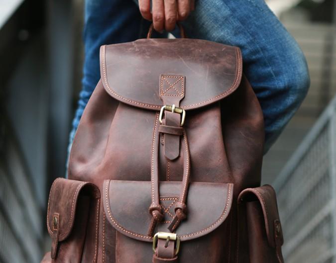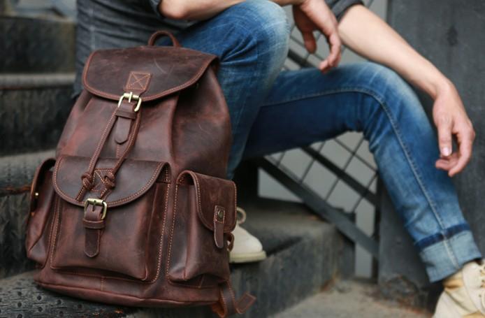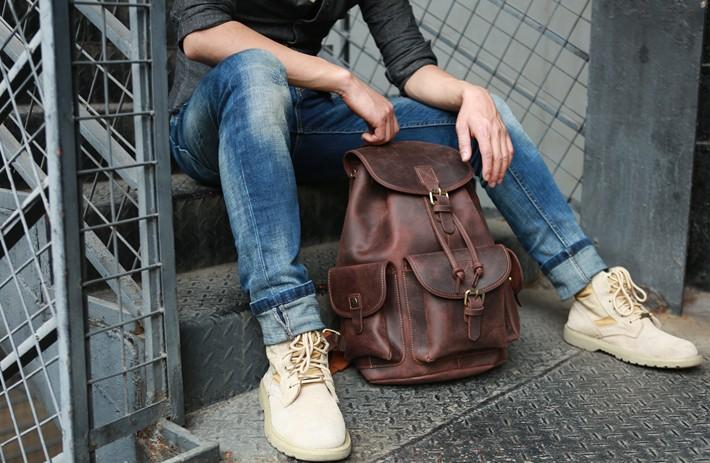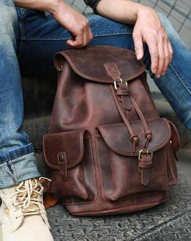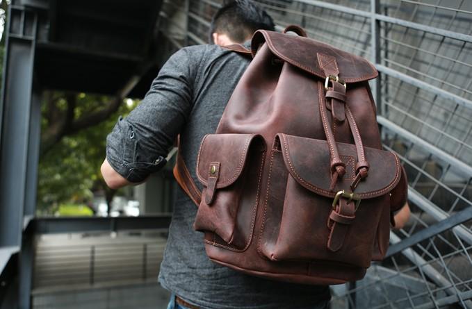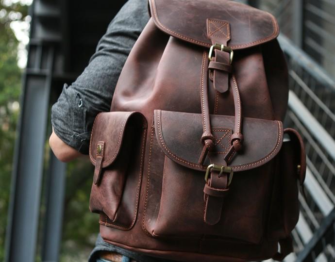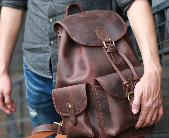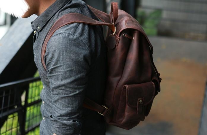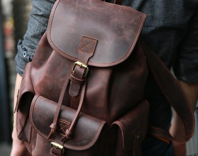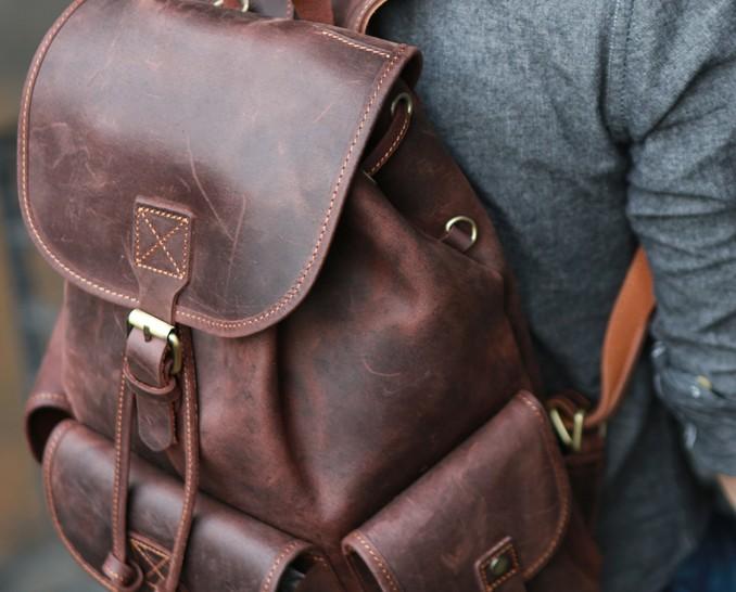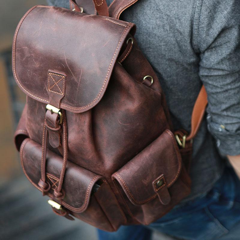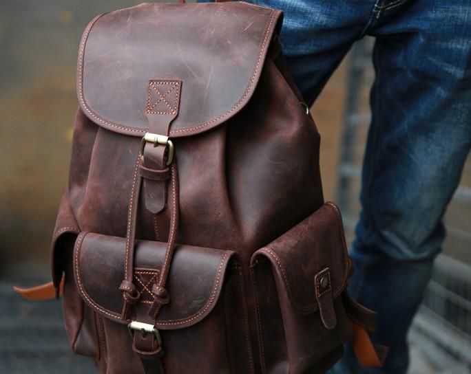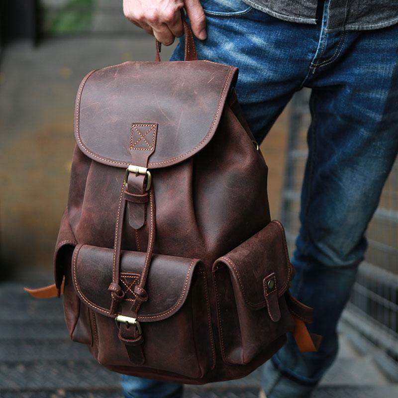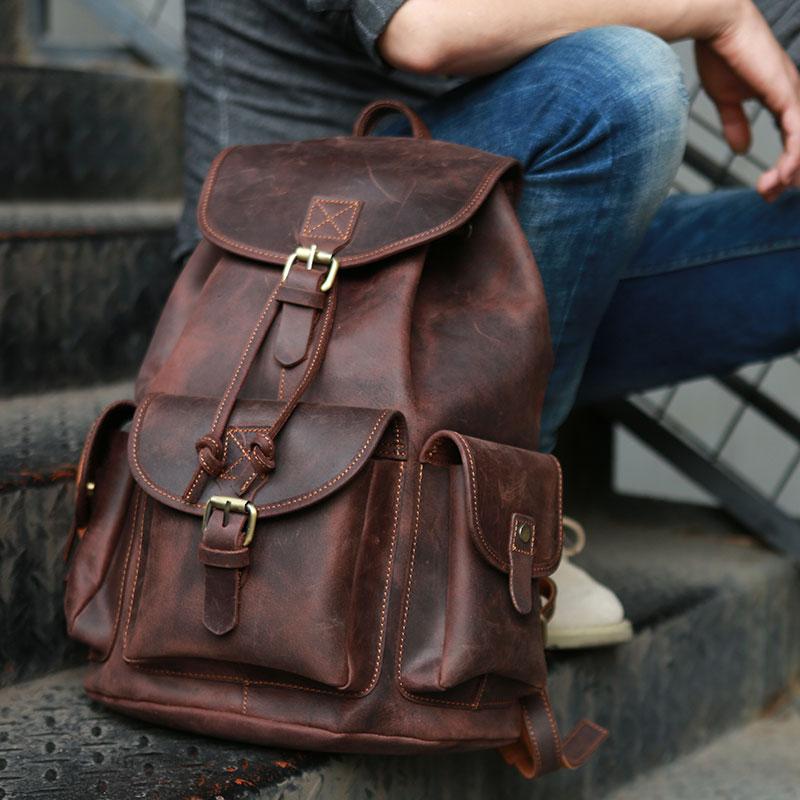 Style: Cool Coffee Mens Leather Backpack Travel Backpacks Laptop Backpacks for men