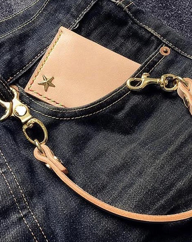 Design: Cool Men's Leather 14‘’ Brass Key Chain Punk Wallet Chain Pants Chain For Men