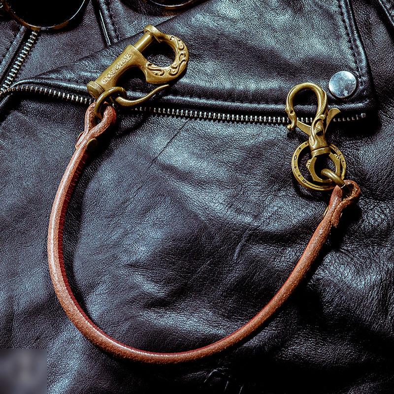 Cool Men's Leather Gold Brass Hook Key Chain Pants Chain Biker Wallet Chain For Men