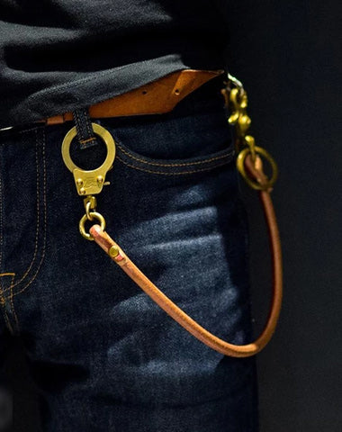 Design: Cool Men's Leather Gold Brass Hook Key Chain Pants Chain Biker Wallet Chain For Men