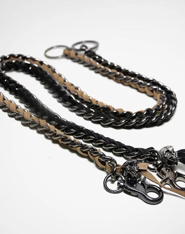 Design: Cool Men's Leather Stainless Steel Woven Skull Key Chain Pants Chain Biker Wallet Chain For Men