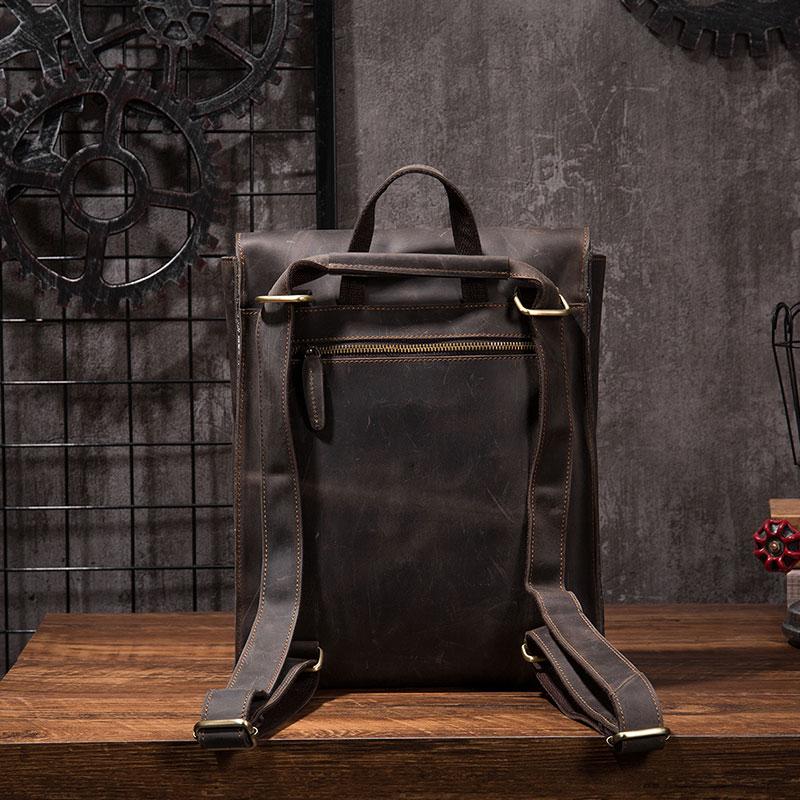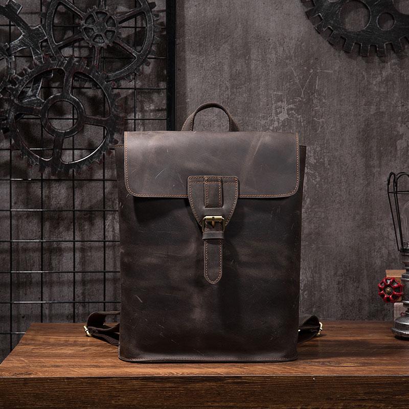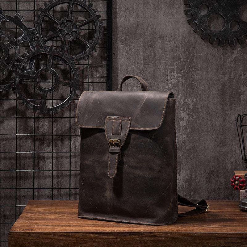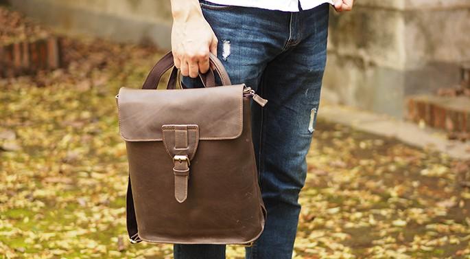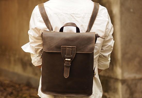 Style: Cool Mens Leather School Backpack Travel Backpack Leather Satchel Backpack for Men