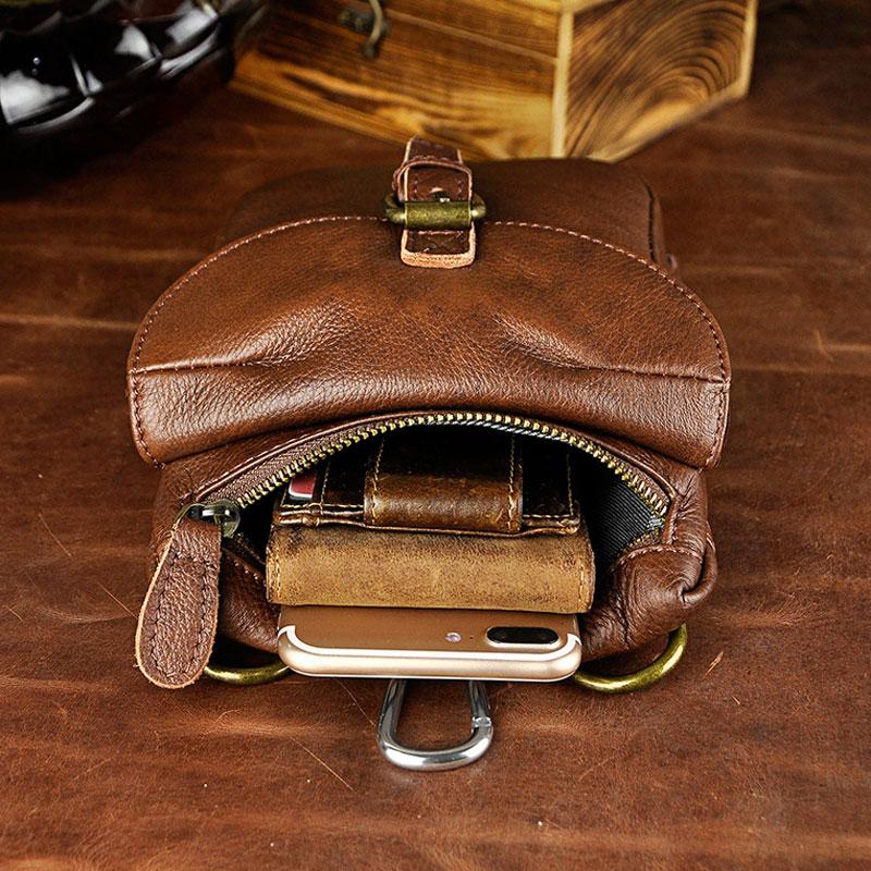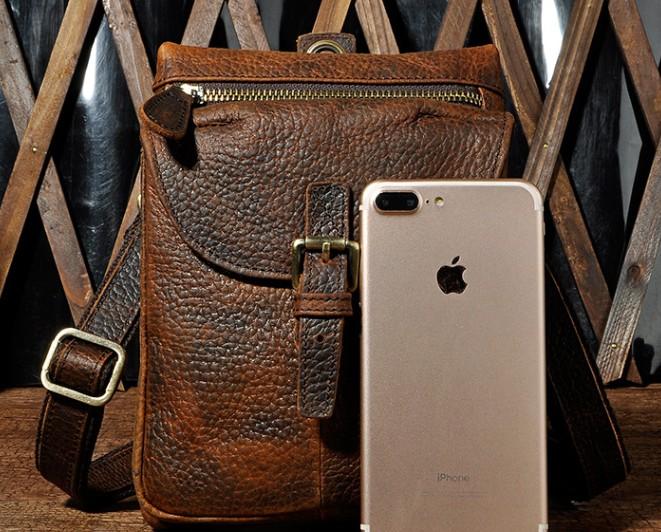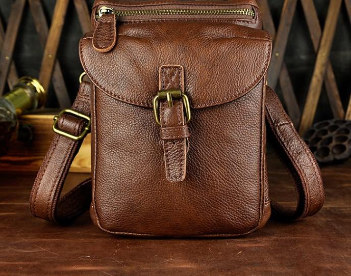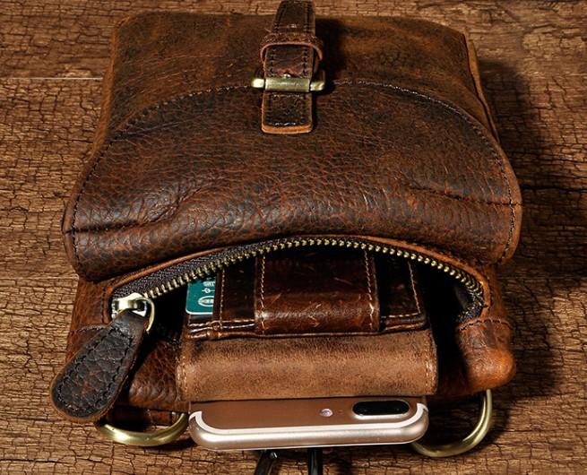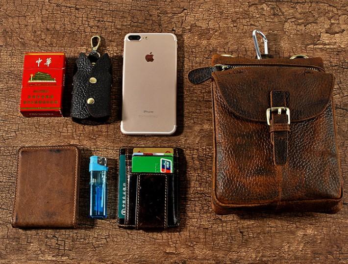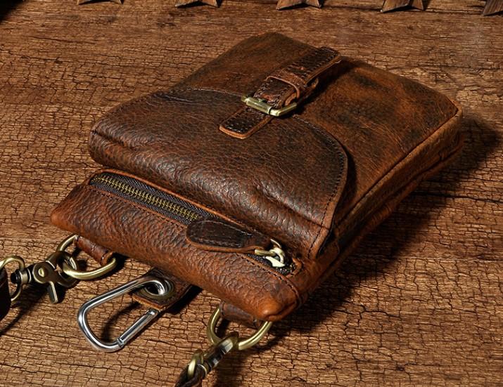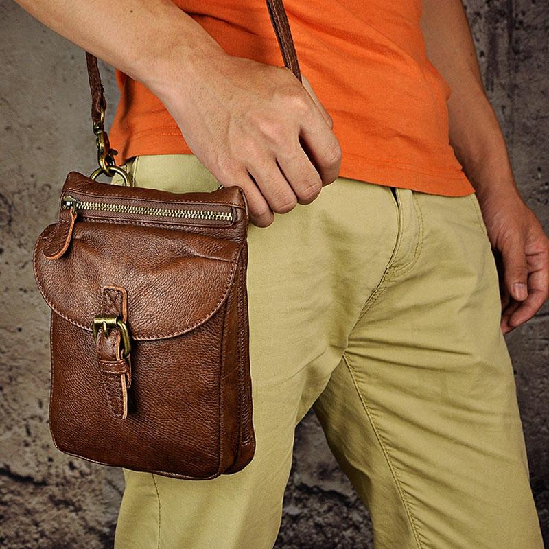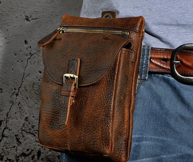 Design: Cool Mens Leather Side Bag Belt Pouch Holster Belt Case Pack Waist Pouch for Men