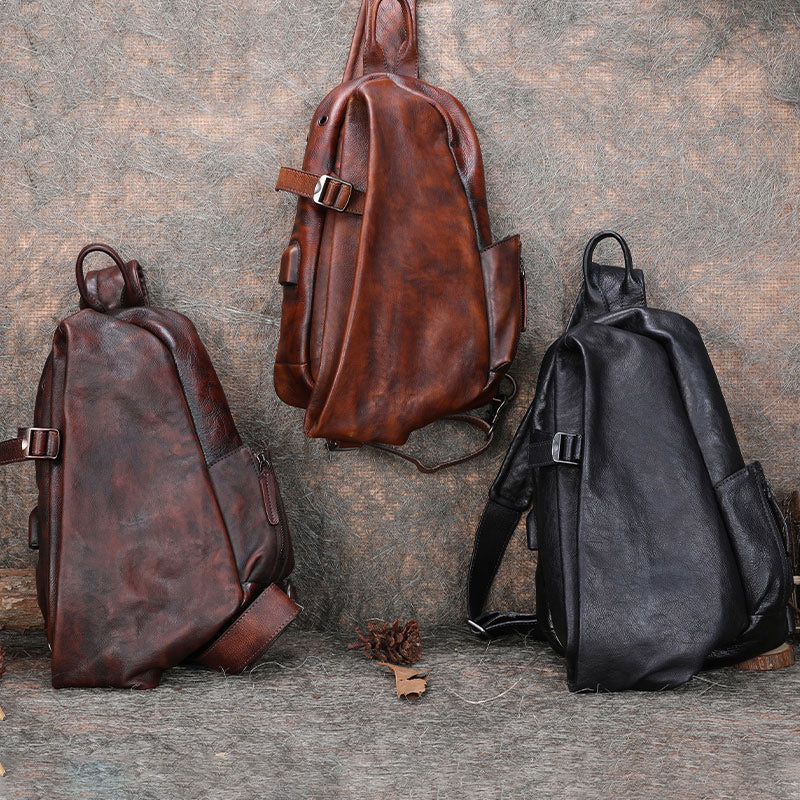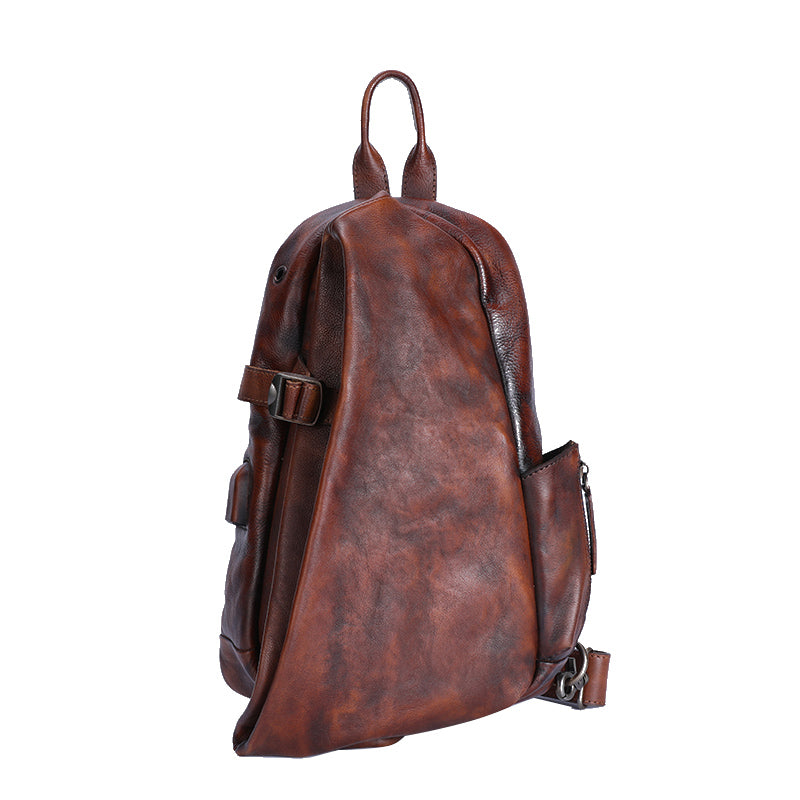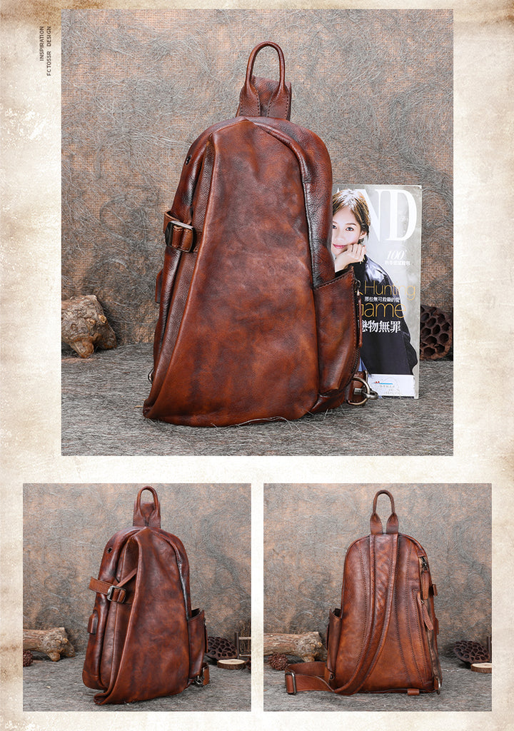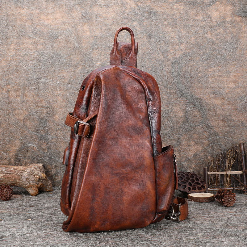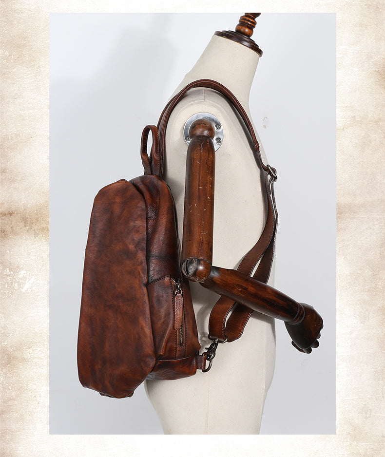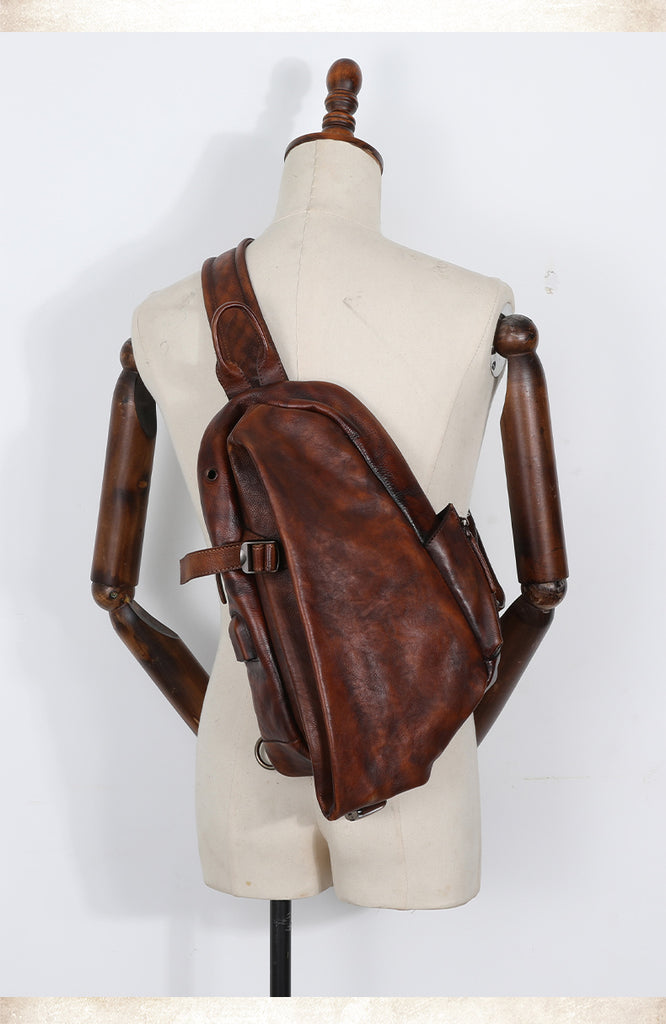 Design: Cool Men's Leather Sling Bag Sling Pack Brown Leather Sling Backpack For Men