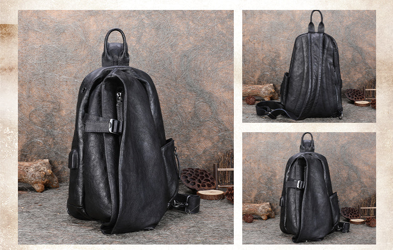 Design: Cool Men's Leather Sling Bag Sling Pack Brown Leather Sling Backpack For MenOverview: