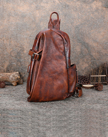 Design: Cool Men's Leather Sling Bag Sling Pack Brown Leather Sling Backpack For Men